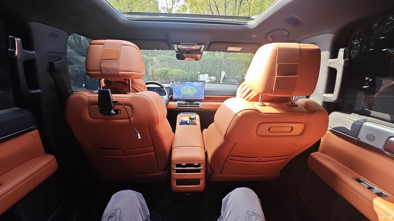 第二排空间是真的宽敞,腿能伸直,中间地台也平,坐三个人也不挤,靠背还能调角度,坐久了也不累。