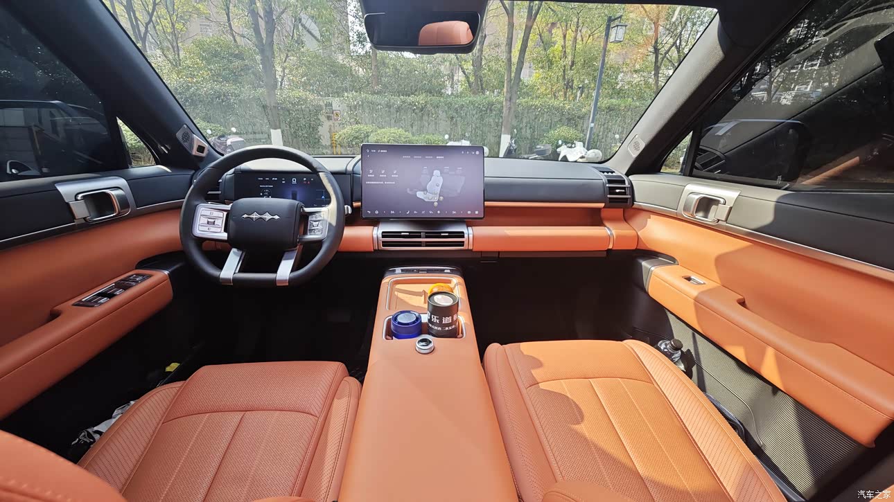 单独说下方程豹钛7的空间,我是真的满意,大五座不是白叫的。前排坐姿高、视野好,调整好驾驶位之后,后排腿部空间依然很宽裕,成年人坐进去不挤不顶腿,头部空间也够,长时间坐车一点不压抑,一家人出门都舒服。中控这边设计得很实用,中央扶手箱直接是冷暖冰箱,夏天能制冷、冬天能加热,跑长途放几瓶饮料特别方便,实用性直接拉满。手套箱空间也不小,放车辆手册、纸巾、小杂物完全够用,开口也大,拿取很顺手。门板储物格前后排都有,放水杯、雨伞、手机、湿巾都没问题,分区合理,不会一开车就乱晃乱响。再说说后备箱,日常家用完全够用,放行李箱、露营装备、婴儿车都轻轻松松,后排座椅还能放倒,偶尔拉点长东西也不在话下,装载能力在这个级别里真的很能打。