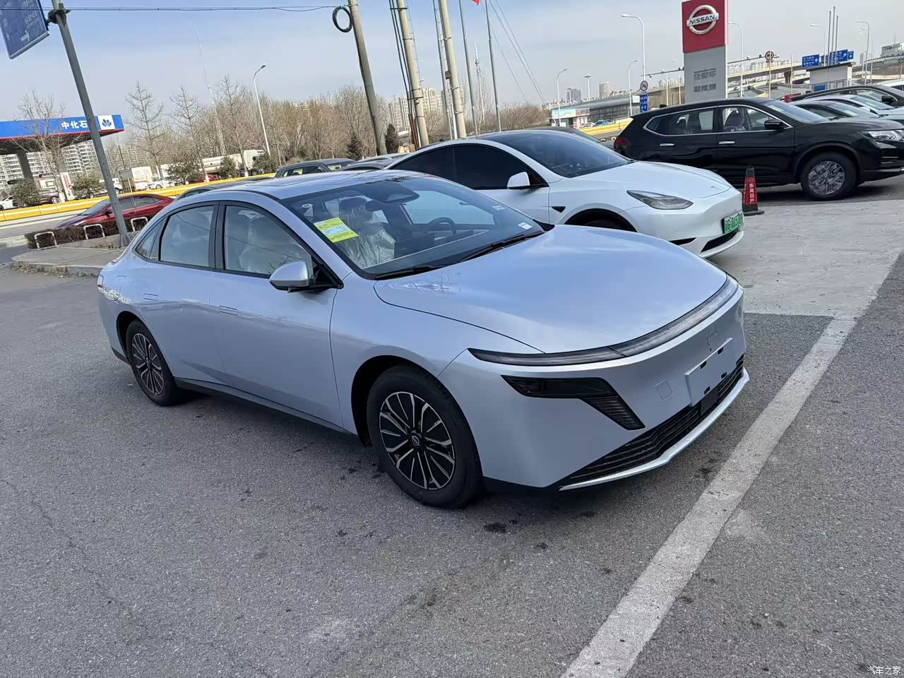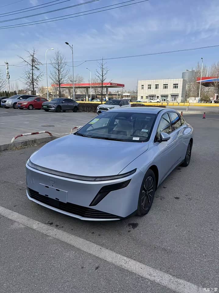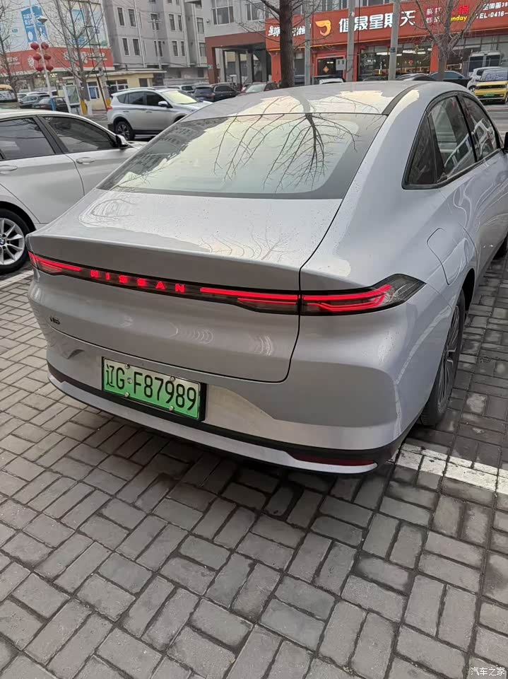 外观我拿的是流光银,这个颜色看着不普通也不沉重,太阳底下有点暖,阴天的时候又是另一种冷的调子,前脸封闭的造型配上贯穿的星环灯,LOGO会亮,充电的时候能看到那种呼吸的效果,侧面线条拉得很长,4831mm这个车长摆出来,门把手隐藏着,整个侧面看过去干净,尾部贯穿尾灯宽到占了九成位置,后面站在车后看宽度的感觉很明确,整体是耐看那种,不是第一眼强刺激,越对着看越能接受。