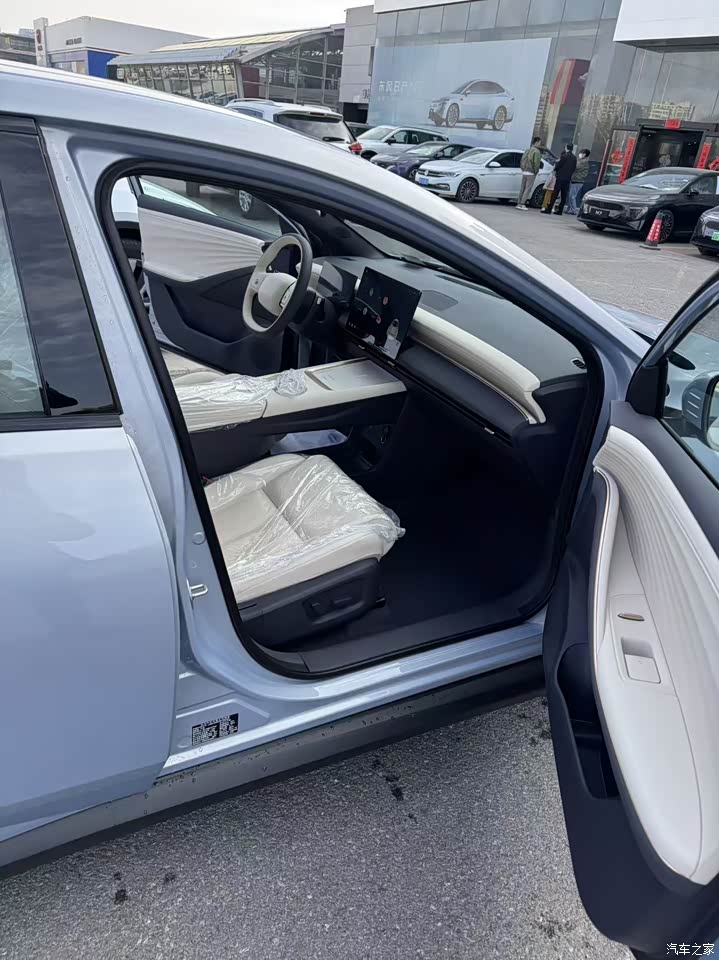 内饰选了白色,买的时候纠结过是不是容易显脏,车开起来看惯了这个色,车厢就显得通透,环抱的座舱坐进去有一种安定感,中控台和门板摸上去是软的表面,14.6英寸中控屏,2.5K的清晰度,图标和字都干净,方向盘是真皮,握着粗细刚好,这两个月用下来,白色座椅没有想象里那种轻易落灰,用车时注意一下,拿湿巾擦一擦就回到原样,新车提回家那几天味道明显,现在散得差不多。