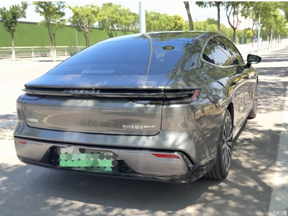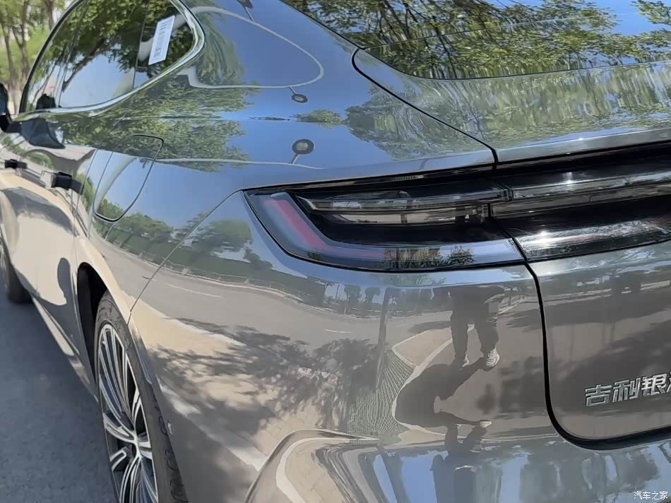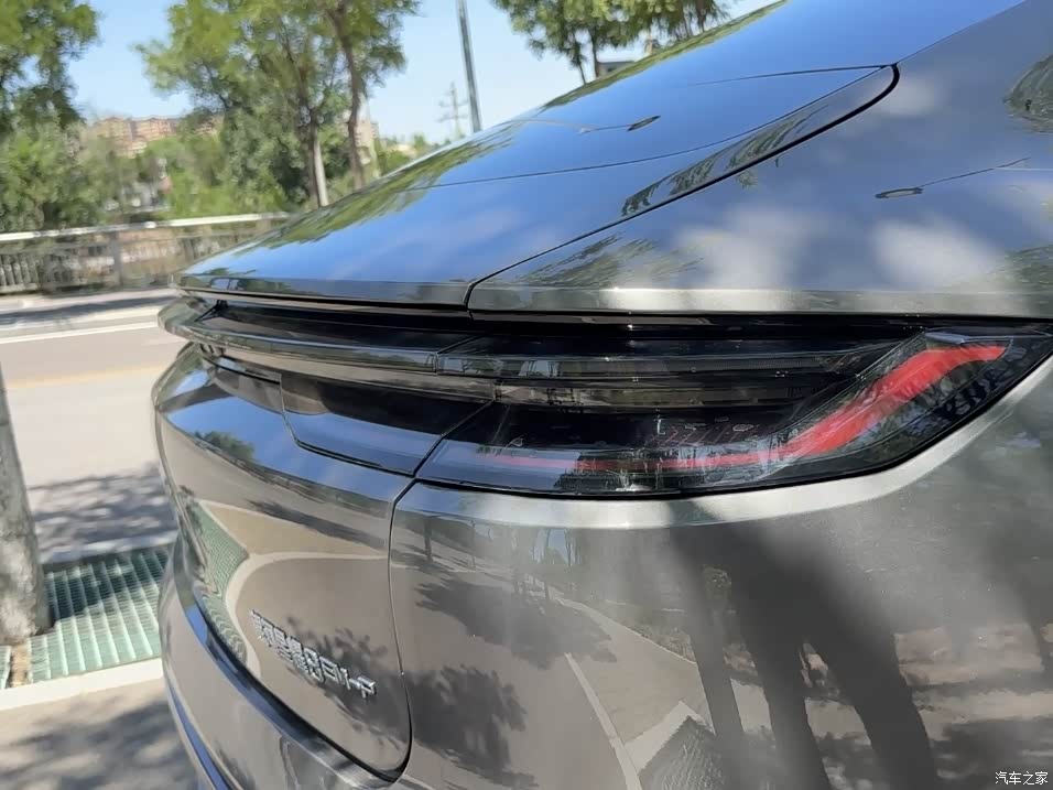 车身侧面线条流畅,隐藏式门把手降低风阻,也让侧面更简洁,19英寸轮毂造型动感,和灰色车身搭配气场十足。尾部贯穿式尾灯辨识度高,点亮后效果精致,排气装饰件提升运动感,整体设计简约大气,没有花哨元素,耐看且不过时,停在小区里经常被邻居询问车型。