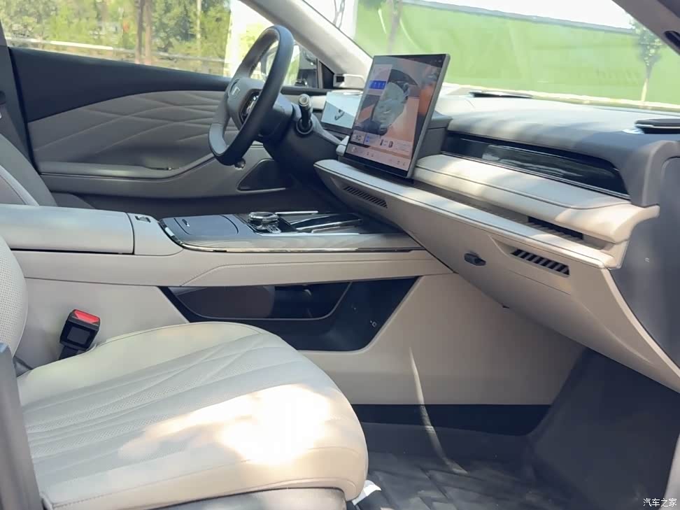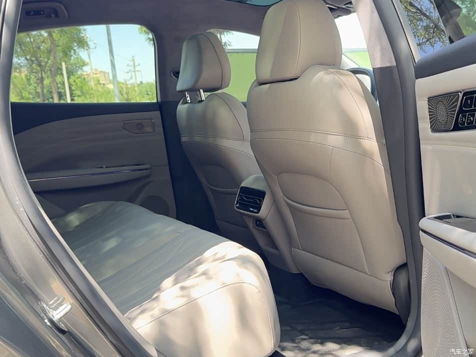 灰色内饰比想象中耐看,比棕色的强,双色搭配营造出的豪华感对得起这个价位。座椅通风和按摩很实用,尤其夏天,屁股和后背能明显感觉到凉意。VIP电动行政座椅坐垫长,长途坐着确实舒服。但细节上还是有槽点,仪表盘尺寸偏小,内嵌式设计影响美观