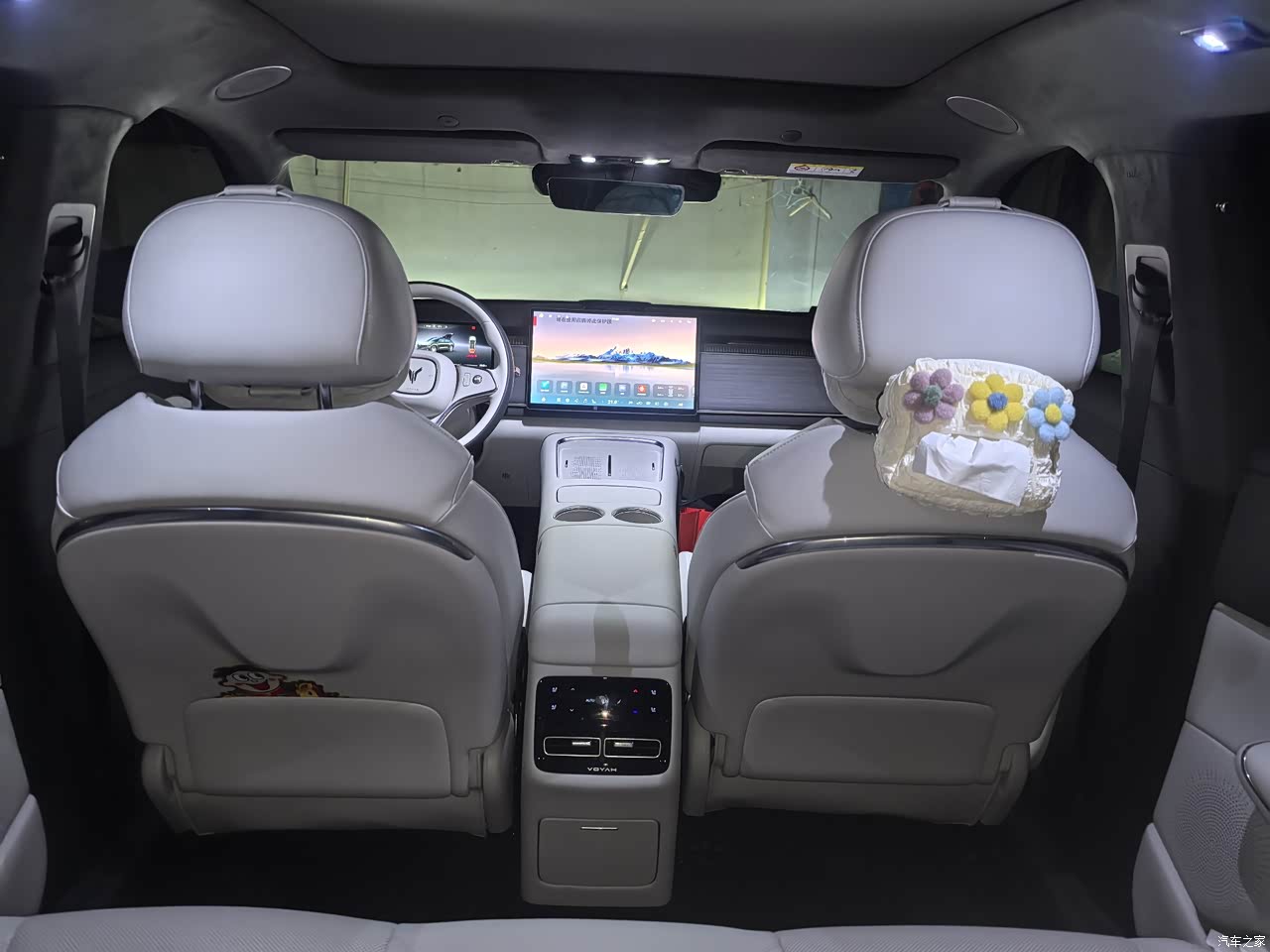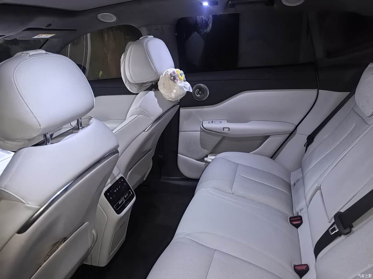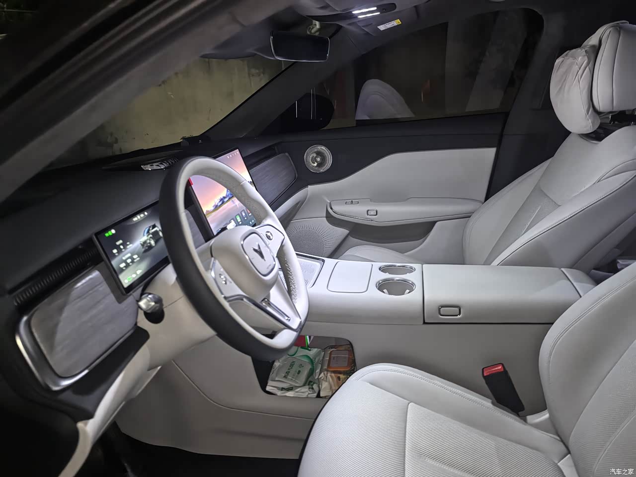 我挑了皓月白,上车第一眼很敞亮,官方说母婴级亲肤,鼻子凑近闻不到刺激味,白内饰带来的麻烦也摆在面前,朋友上车拿着肉夹馍,碎渣掉一两点进座椅缝,油迹用湿巾擦不干净,还得拿软刷打泡沫慢慢刷,家里小侄子上车脚乱晃,门板上已经两道黑印,车里备了清洁湿巾和泡沫喷雾,出门一脏随手处理,座椅包裹和支撑到位,腰背靠着不累,开长途连续几个小时下来精神还行,车顶那块天幕配电动遮阳帘,日头强的时候一按盖住,夏天晒头皮的问题不犯,这个细节用起来是真省心。