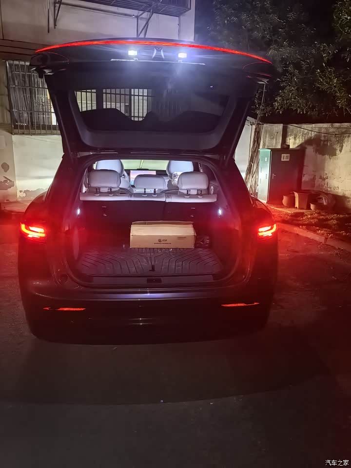 空间这部分家里人坐了都说宽,宣传里写得房率0.8%,怎么算不研究,坐进去就知道后排腿前面余量大,我175,前排照我的坐姿调好,后面腿能搭上,脚伸展得开,地板是纯平的,过年回去一路后排三个人,中间那位脚能放直,不用歪着,后备厢开口大东西好塞,常规状态可以放下好几个登机箱,盖板下面那层暗格用处太大,线、手持吸尘器、雨具全扔下去,上面一块平面看着利落,车里看不见乱七八糟的东西,顺手就养成了分类放的习惯。