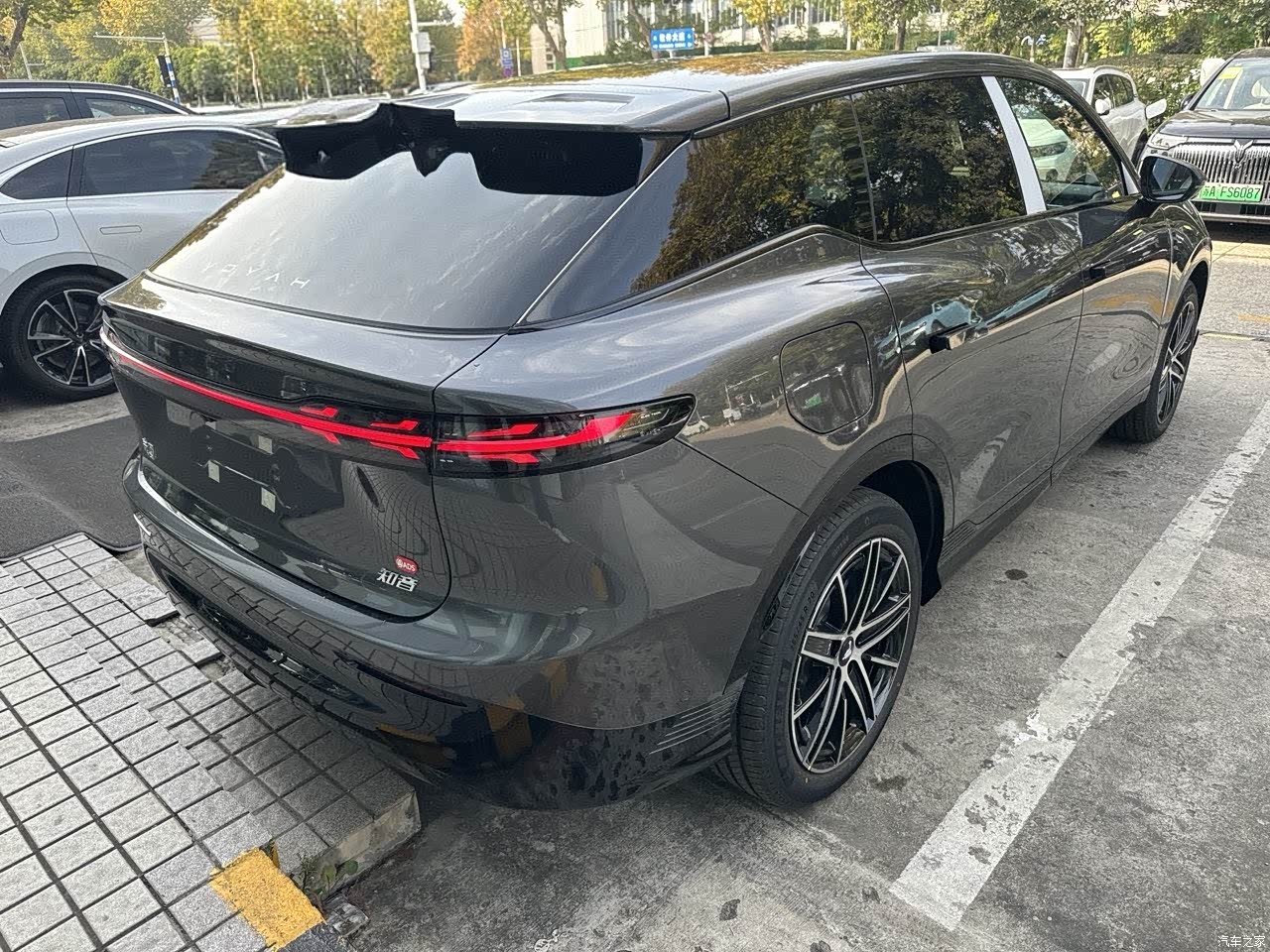 外形这一套我看着顺眼,前脸那块星幕,销售叫闪动星河,远看一整面,里面小logo点点,晚上解锁流水一亮,路边人走过目光会停一下,侧面线条顺,有肌理,不是那种完全圆成一个鼠标的样子,尾灯连成一条,天黑了辨识度好,整车看起来精神,尺寸不小,气质干净,不拖泥带水。