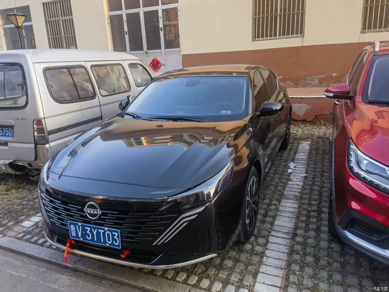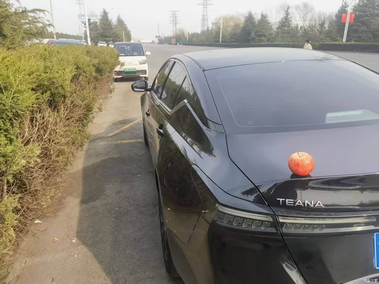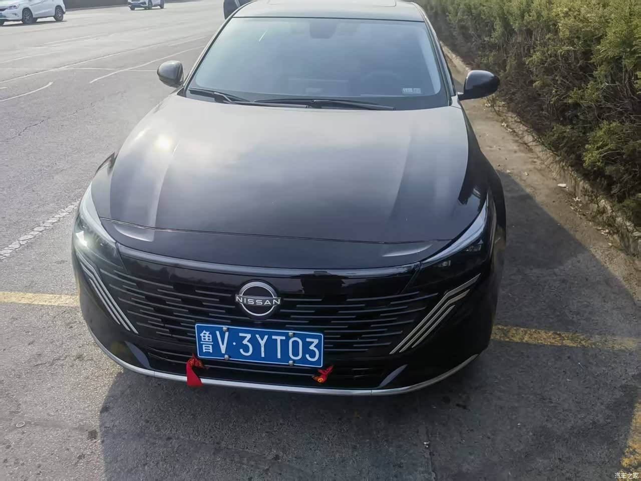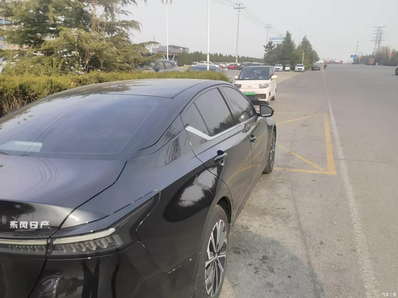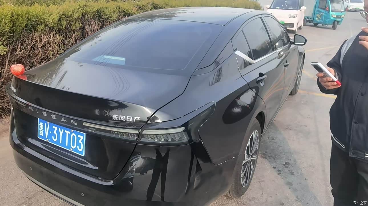 外观是黑色天籁,属于耐看,前脸V-Motion格栅做得更宽,贯穿式LED灯带一亮,车标能发光,晚上小区车位里认车很方便,车身线条顺,车长接近五米,停那儿存在感到位,黑色不太耐脏,洗车两天表面落灰就明显,车漆偏薄这个事我也碰到了,停车开门不小心挨了绿化带,门边上留了一道白印,心里不舒服但用久了也就知道该避开一些位置。