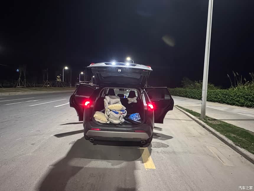 要说最满意的,就俩点:空间够造和开着稳当,完美踩中我居家用车的需求。 惠东吉隆这边日常不是载着老婆孩子去海边露营,就是拉着渔具去河边钓鱼,有时候还得帮家里捎点本地特产去镇上,荣放的“能装”真的救了急。上次全家去磨子潭游玩,后备箱塞了2个露营帐篷、1个折叠桌椅,还有孩子的玩具箱、两箱矿泉水,后排坐3个人也不挤,腿能伸得直直的,全程没人喊闷。 驾驶感受更不用多说,在吉隆的乡镇小路和惠东的城区路上开,方向盘特别轻,单手打方向都不费劲,转弯半径小,拐个急弯、钻小巷子特别灵活,不像之前开的轿车那么“笨”。而且跑高速的时候也不飘,上周去惠州办事情,时速跑到100,车身依旧稳得很,变道干脆利落,给我的安全感直接拉满。