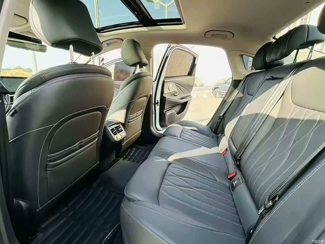 前排调好座椅,后排腿部还有两拳多余量,坐3个成年人不挤,后备箱能放下孩子推车和露营装备,郑州周边游完全够用。但储物空间很鸡肋,杯架浅、门板格窄,大瓶水塞不下