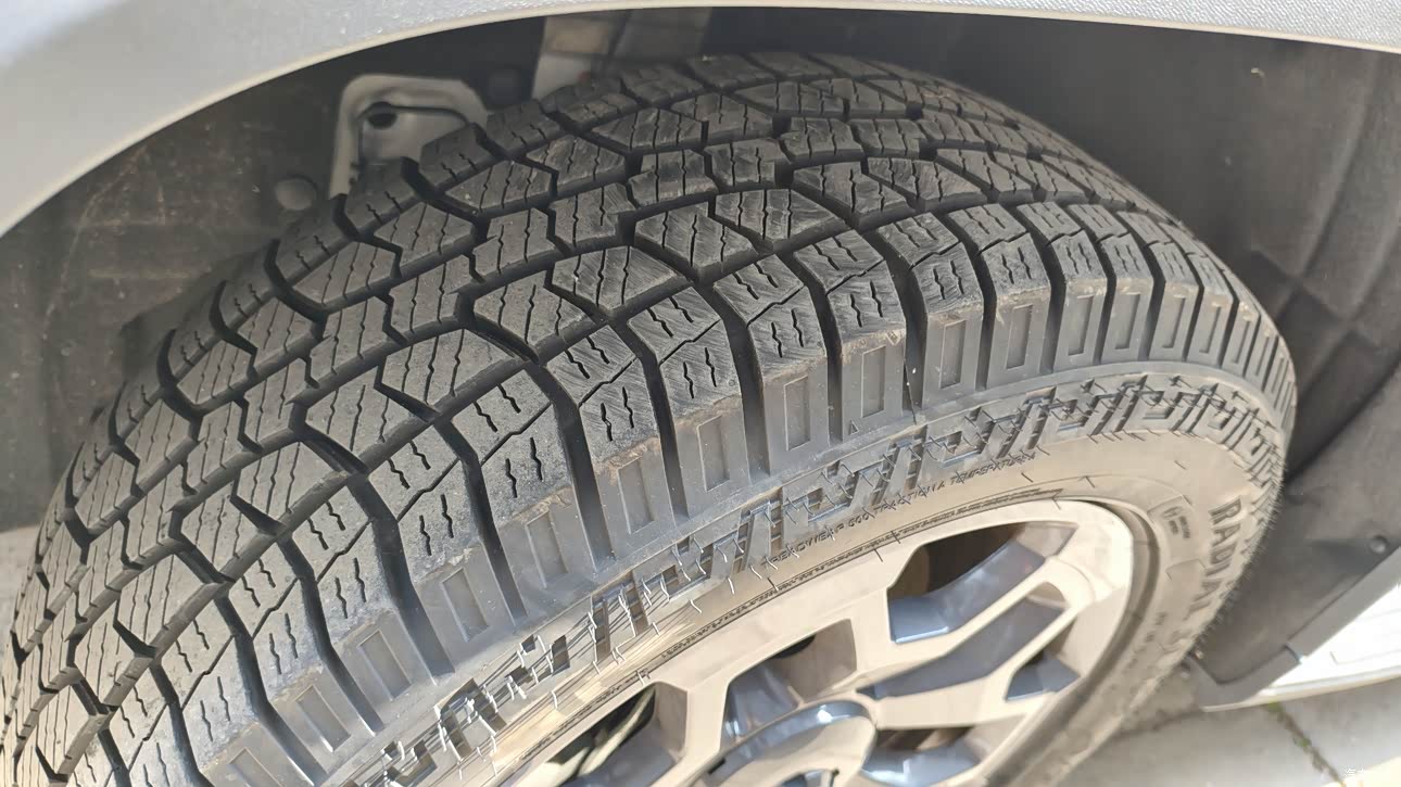 外观我肯定给高分,吸引我买车就是冲着外观去的,一眼喜欢,硬朗方正,线条很直,典型的硬派越野风格,大灯、轮眉、小书包备胎都很有辨识度。原厂黑化套件加上AT胎,气质直接拉满,日常开霸气且不夸张,出去玩又足够有范儿。