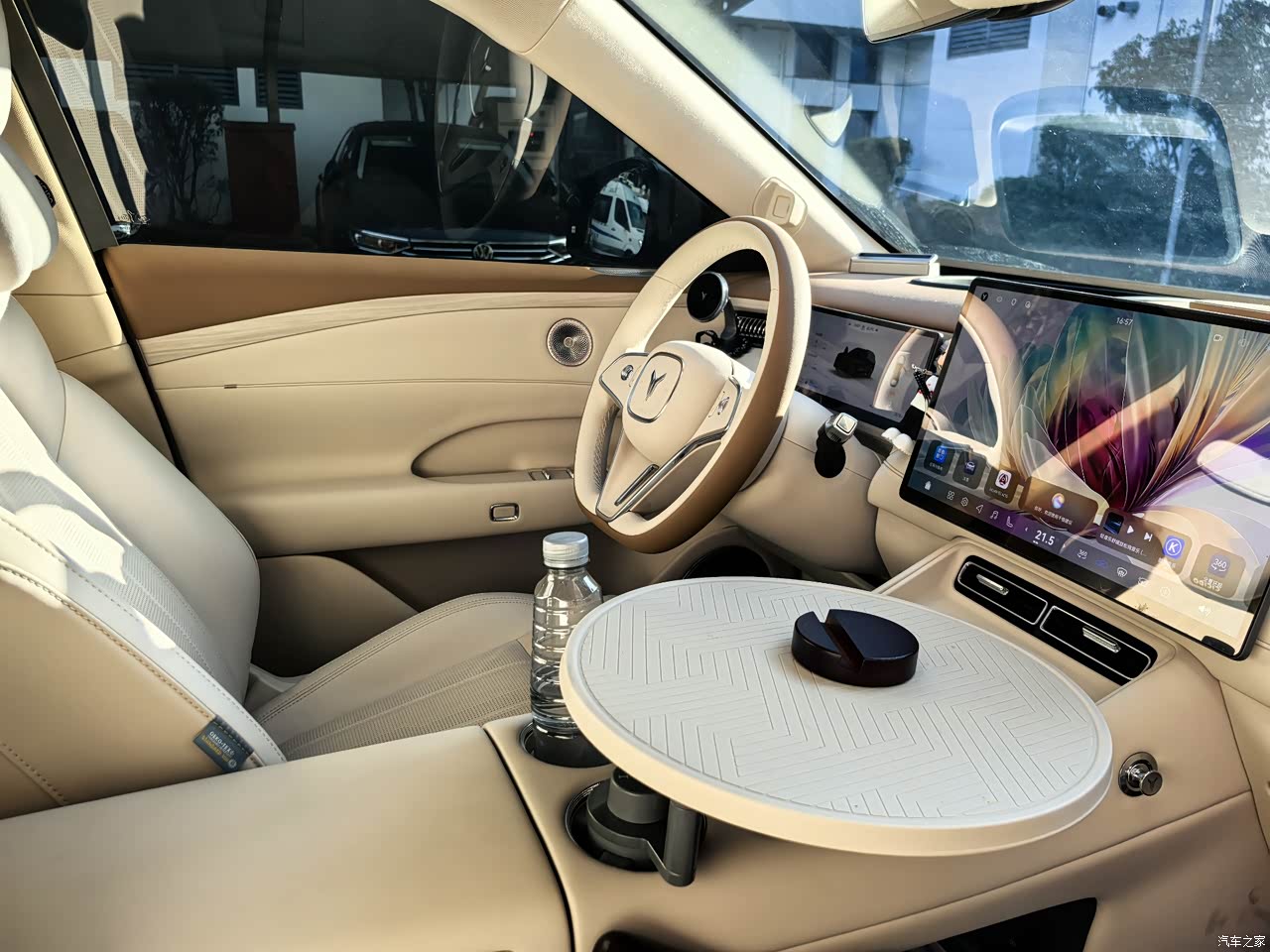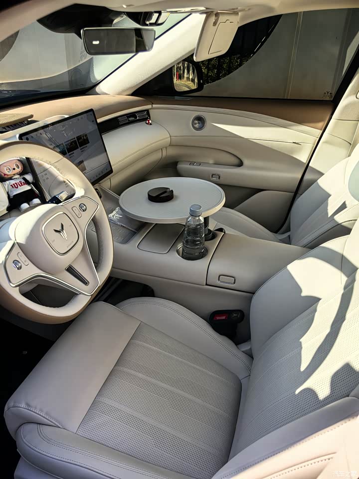 所选用的琥珀棕内饰着实是选对了,其与灰色外观搭配起来极为和谐,当人坐进车内的那一刻,便仿佛拥有了“家”的感觉,并非那种毫无温度的新能源车内饰。从整体来看,其用料颇为实在,在触手可及之处,基本上都是采用软质材料进行包裹处理的,其中中控面板更是采用了细腻的皮质材质,而门板处还精心点缀着木纹装饰,这种质感相较于同价位的许多车型而言,要强大得多。