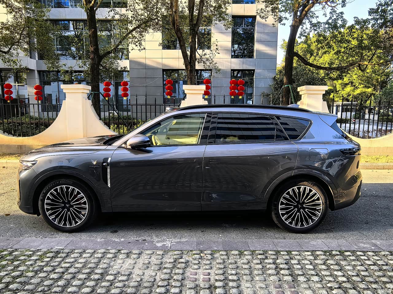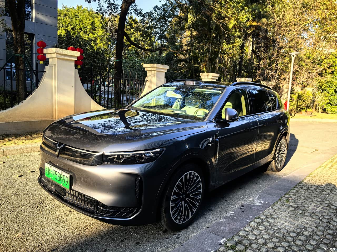 当第一眼瞧见灰色款的岚图FREE+时,便当即决定要它了。这款车型并非呈现出那种颇为张扬且亮眼的亮面效果,反而是带有低调气息却又颇具质感的哑光灰,而且越仔细去观赏,就越觉得它别有一番韵味。其车身的线条走得很是流畅,在前脸部分能够看到贯穿式的灯带,同时还配有发光LOGO,到了夜晚将其点亮起来之后,特别容易让人一眼便能辨别出它的存在。