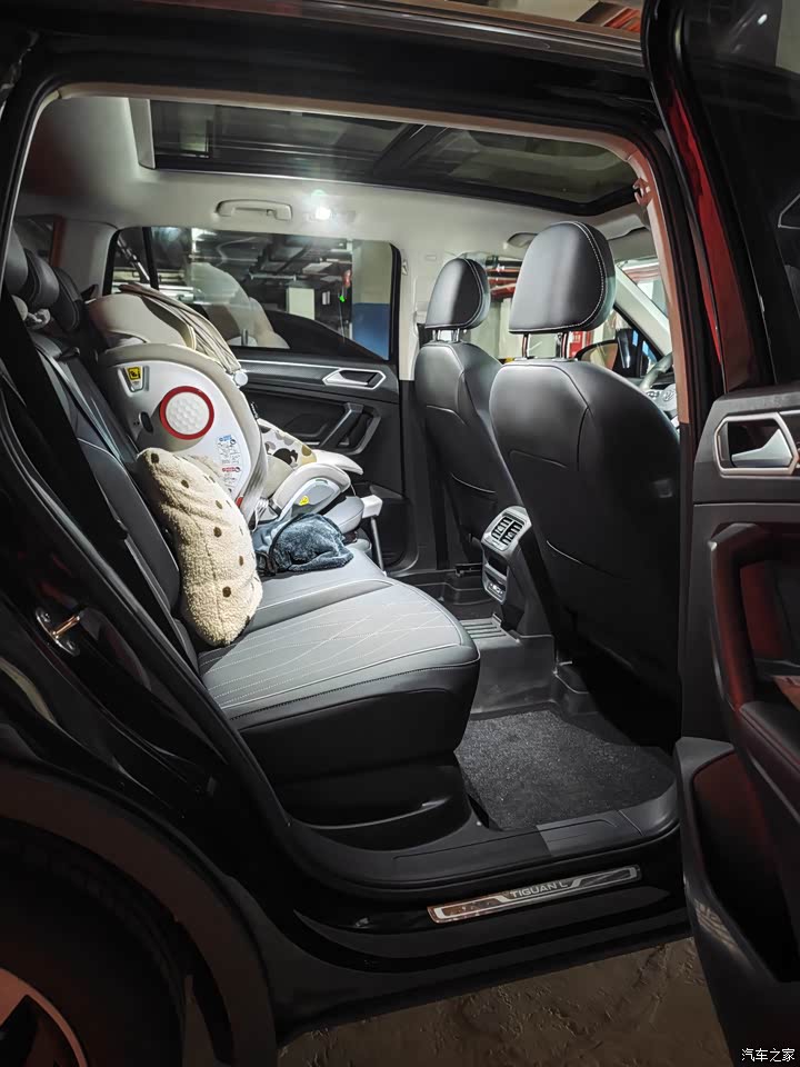 空间后排可以跷二郎腿,放个安全座椅侧也能上下车,头部空间更是夸张,随便伸懒腰。