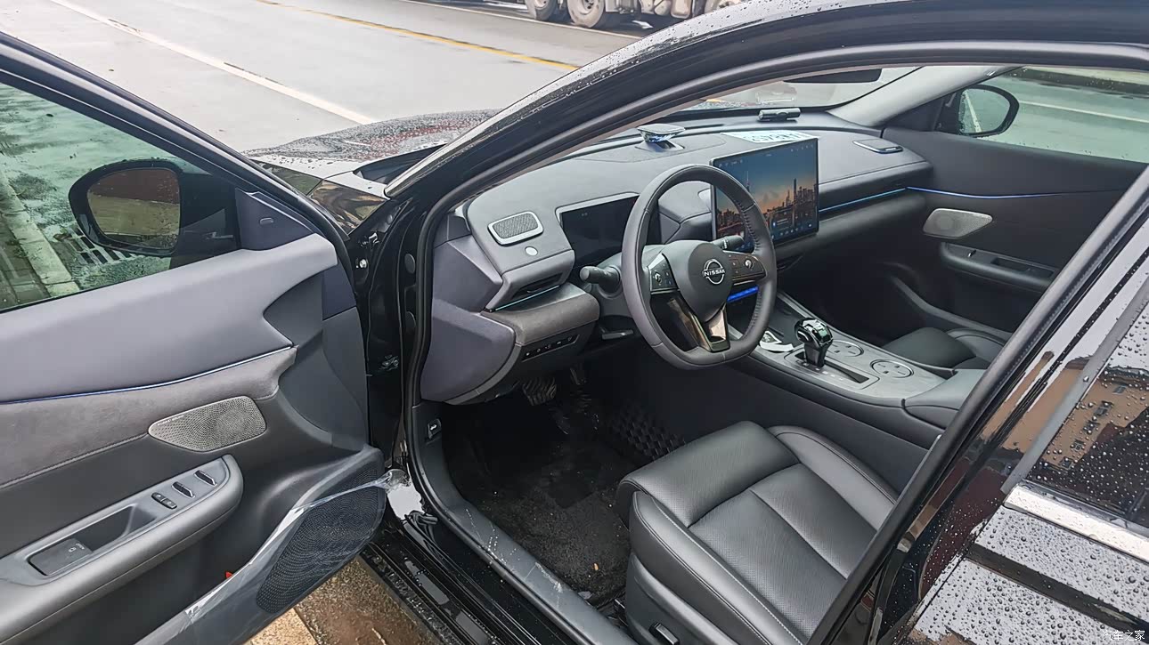 选的黑色,洗干净了看着利落,落灰会更显眼,需要勤洗,前脸是无边界格栅,中间日产标发光,夜里一亮有存在感,车身侧面拉得长, 车长四米九多,线条顺着走,19英寸轮毂支起来,视觉上更运动,尾部嵌入发光的NISSAN字母把两侧尾灯连起来,回头看一眼能认出来。