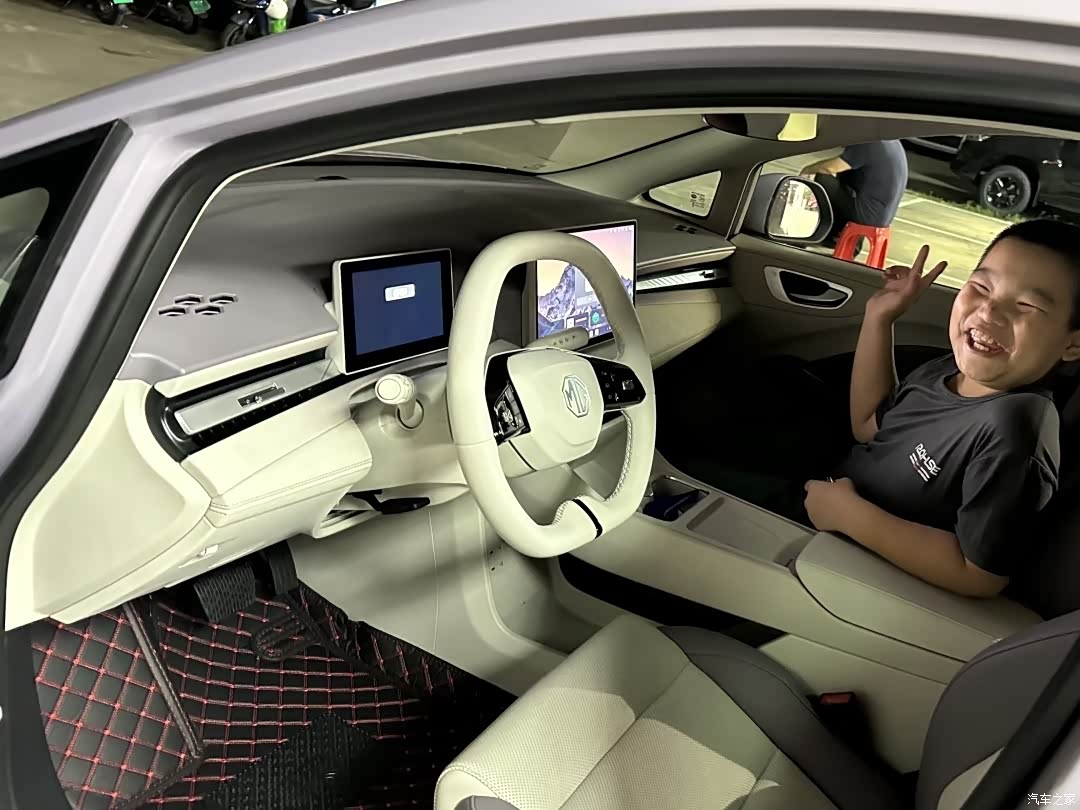其实之前试驾过一次,但当时车上人多,心里紧张,根本没顾上感受这车到底好不好开。今天认认真真开启第一次驾驶之旅,感觉完全不一样! 我和老公都是开了10年油车的老司机(之前一直是本田雅阁),本以为换成电车需要适应期,结果没有任何不适感。操控顺手,刹车线性,甚至比想象中还顺滑。我俩的一致评价是:这辆小车,很好开!最惊喜的视野变化,以前开雅阁这种大车,坐姿低,视野也低,像坐在地上,。现在换成MG4,视野一下子高了,路况看得更清楚,甚至能直接看到车头位置!小车本身灵活,加上视野通透,停车时也更有手感,窄路穿梭信心倍增。
