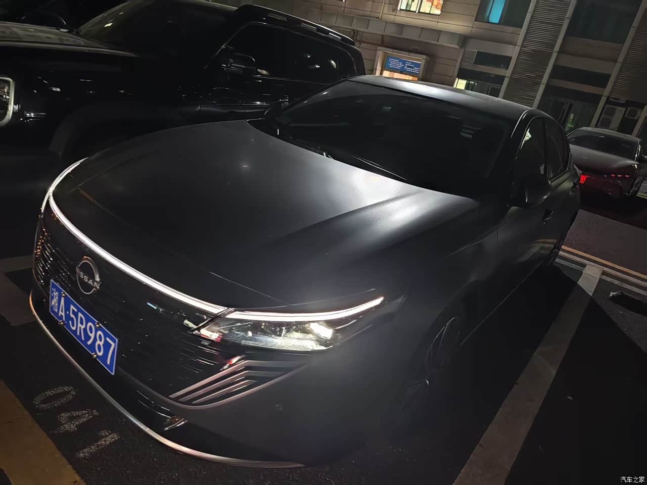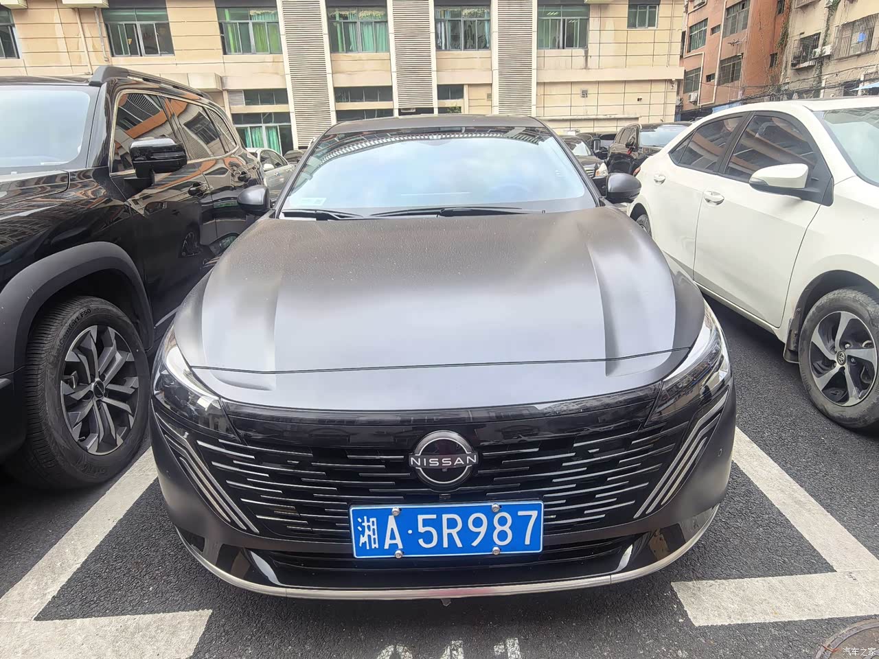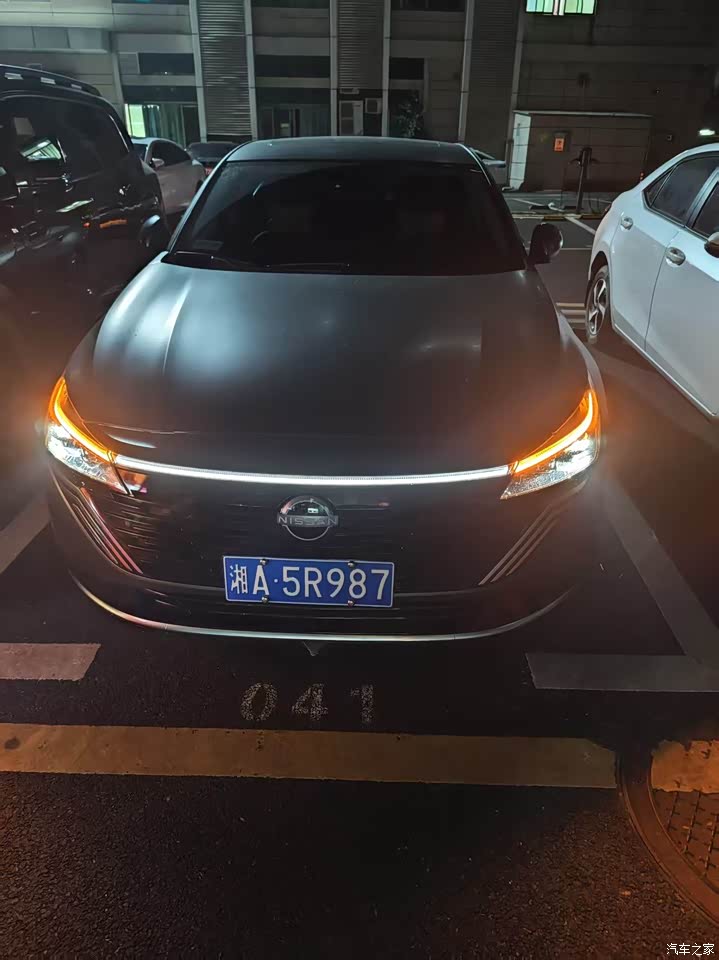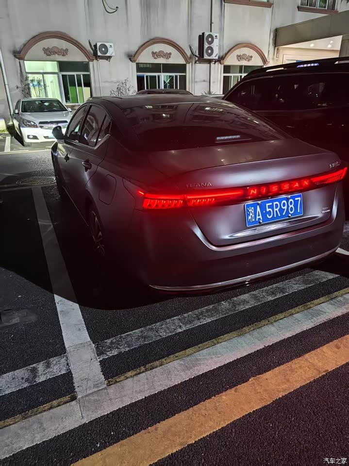 外观我挑的羽纱灰,实车在太阳下会有一点淡淡的蓝调,阴天又是稳一些的灰,日常看着耐看,前脸还是日产那个大V形状,格栅里做了羽毛纹一层一层的细节,比老款规整精致,侧面拉得比较长,车尾翘一个小鸭尾,搭19英寸轮毂,轮圈样式不花,配合车身线条干净,既不过分抢眼也不显沉闷,小区停车时有人问颜色编号和轮胎尺寸,远看识别度有,近看细节也够用。