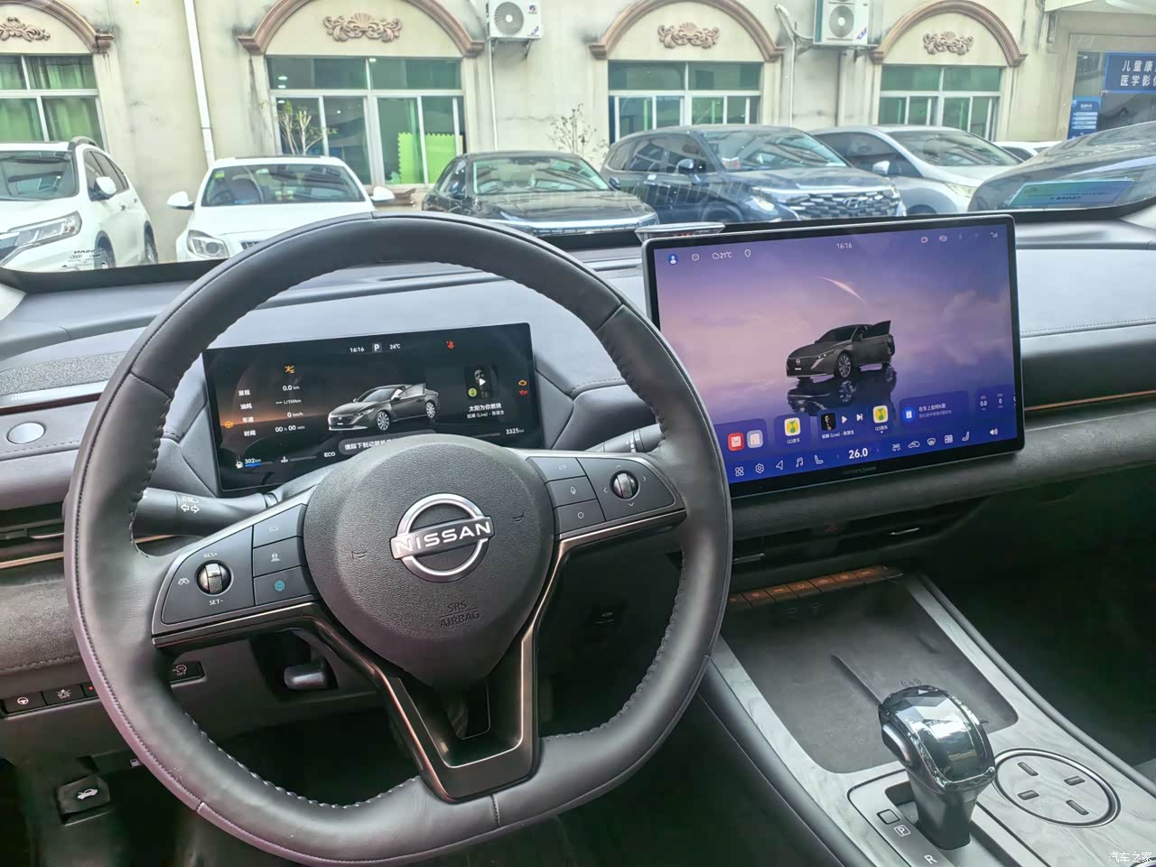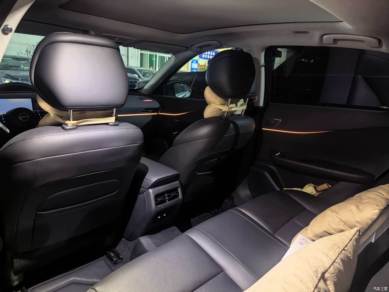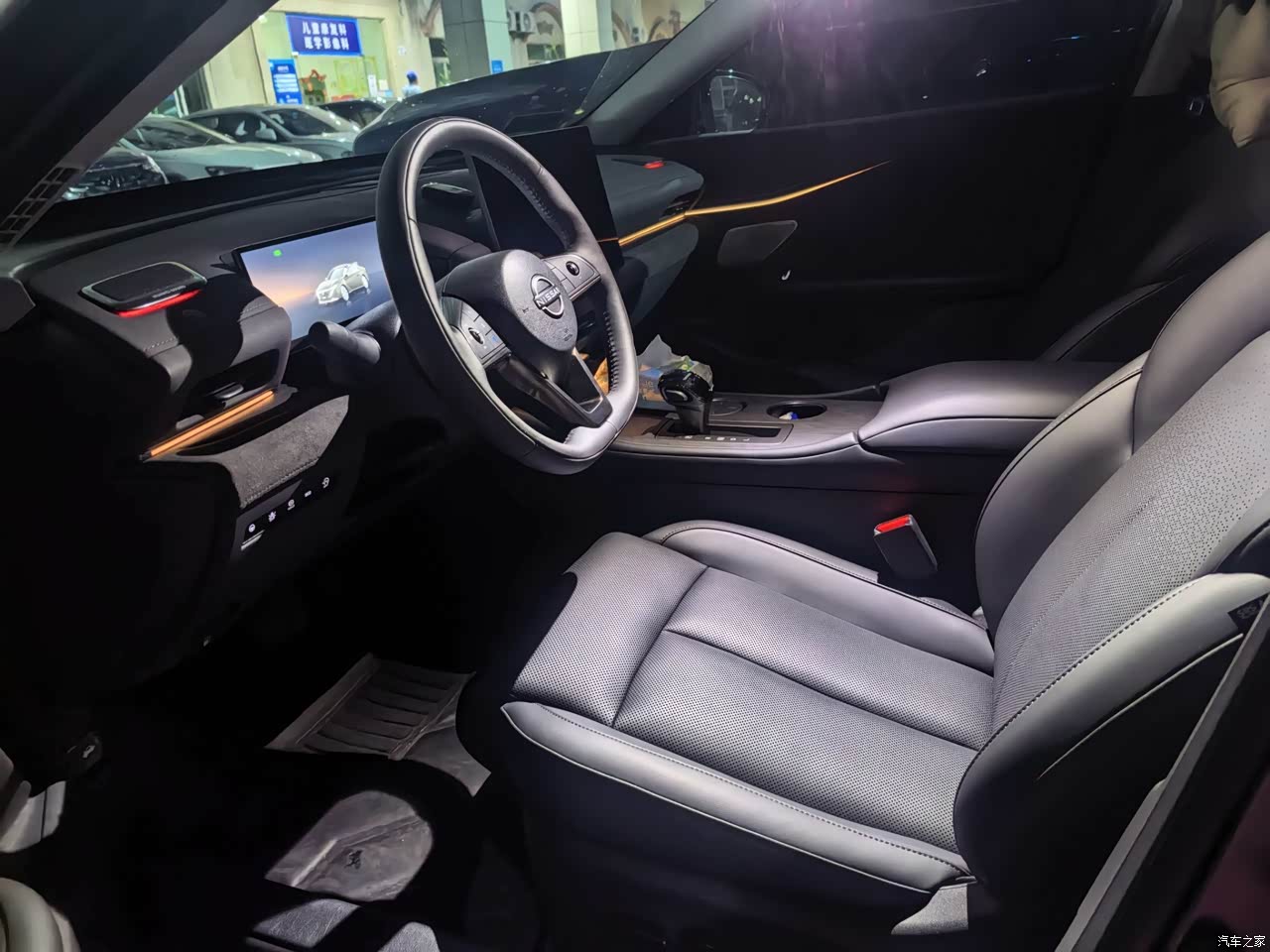 内饰我选黑灰,视野里亮一些,耐脏也好打理,中控台上方和门板扶手这些位置用的软材质,摸着不生硬,拼接和压线看着整齐,真皮座椅延续日产一贯的舒适,表面软,里面支撑也够,腰背靠上去有承托,开长途肩颈压力小,新车味道提车时有,通风和暴晒结合跑了两周,味道下降明显,细节里这个水晶挡把在夜里配氛围灯,视觉效果干净,车内按键回馈清晰,储物格分布也顺手,用起来不需要适应多久。