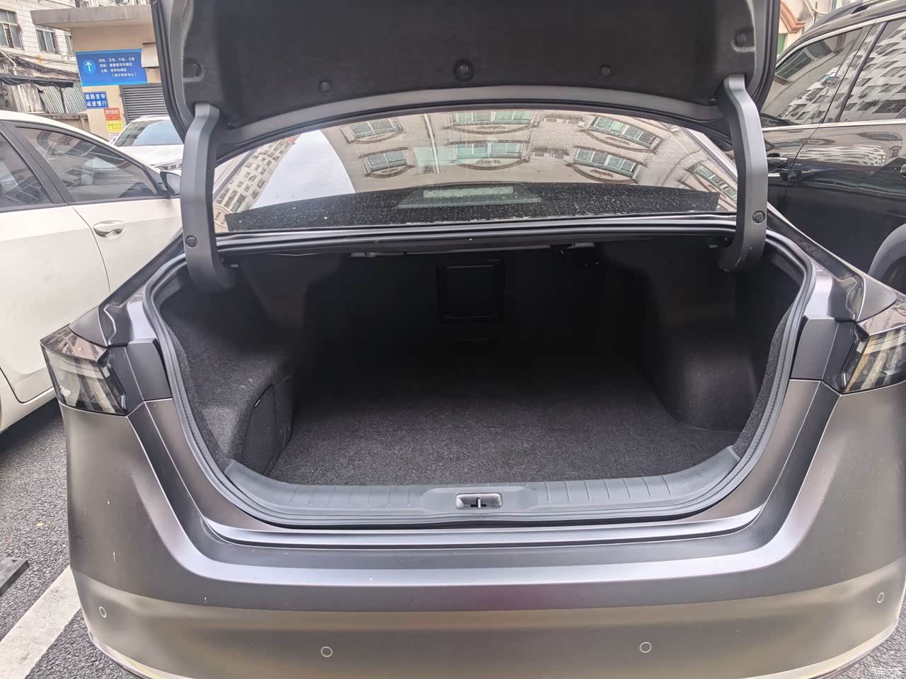 空间是B级车的水平,轴距2825毫米摆在那,我175身高,前排调成我习惯的坐姿,后排坐进去腿部空出两拳多,翘腿也不费劲,后排坐垫长度够,对大腿支撑到位,长时间乘坐不发酸,地台中间有凸起,厚度还可以,三个人短途也能安排,后备厢纵深挺长,装过三个行李箱再塞两个软包不挤,就是开口略窄一点,搬大纸箱要找一下角度伸进去,后排放倒后装长条物件没问题,家用通勤带娃装婴儿车也顺手。