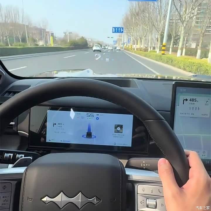底盘扎实,过减速带和坑洼路面时,没有明显的颠簸和弹跳,悬挂调校适中,兼顾了舒适和操控,低速行驶时很平稳,跟车很轻松,不会有顿挫感,刹车线性,制动效果很好,给人足够的安全感。四驱系统在菜市场周边的湿滑路面上表现很好,起步不打滑,行驶很稳定,动力衔接顺滑,不管是纯电模式还是馈电模式,动力都很充足,不会有动力落差。