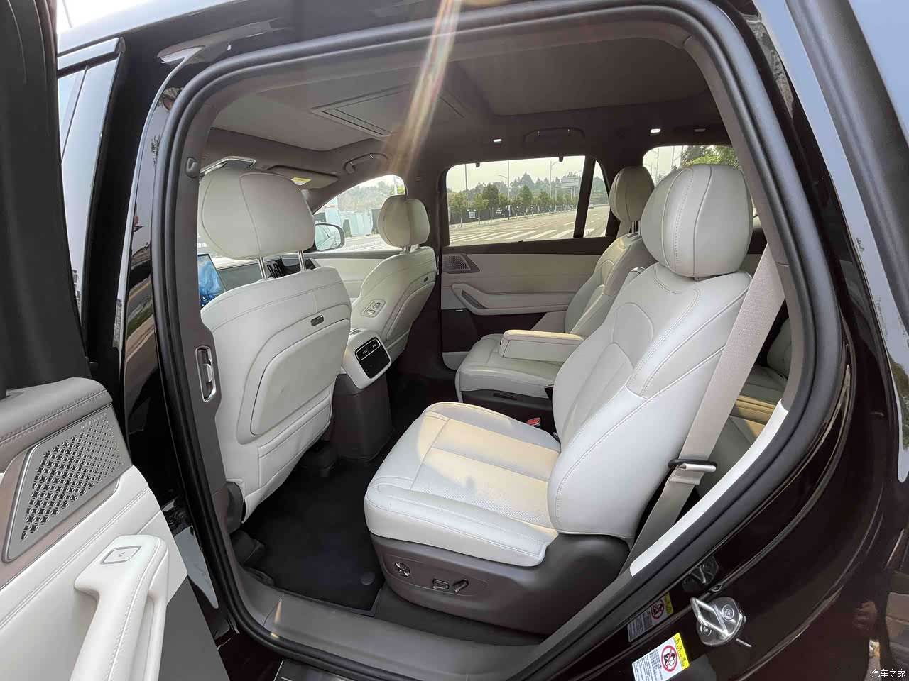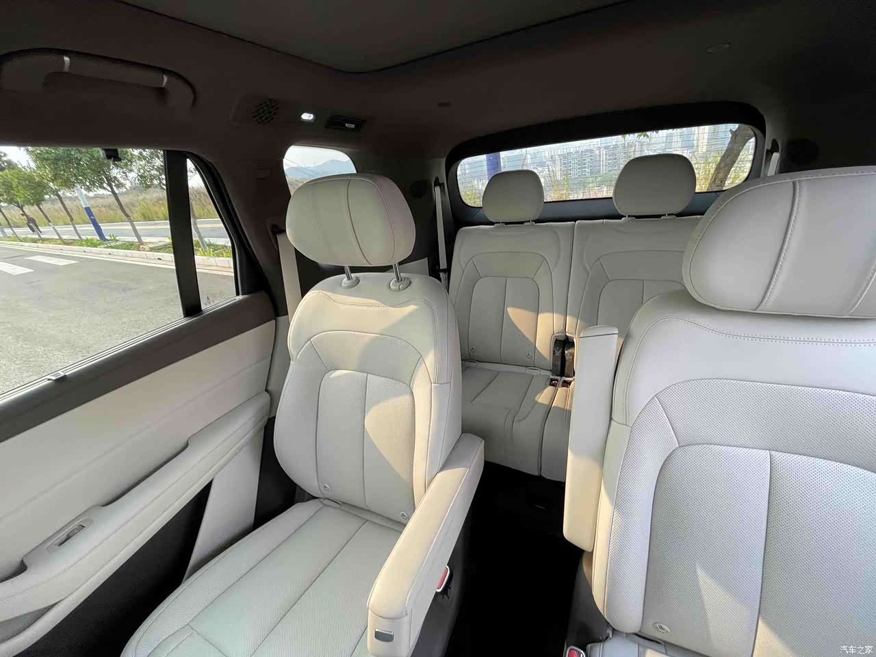 前面两排每排都是两个座位,座椅和座椅之间的距离很好,这种设计给第三排的进出的朋友带来很大方便,中间过道进入第三排,一般的身材都不会受多少阻碍,空间足前面的舒适性也能够得到保障。