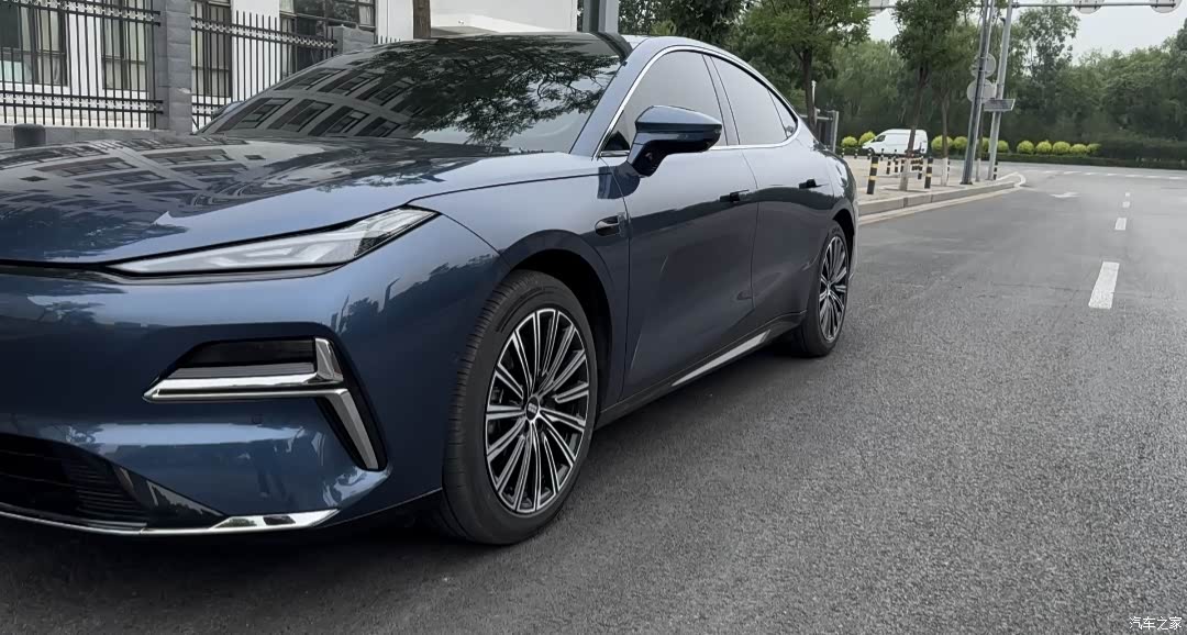 选的蓝色,阳光下显高级,耐脏也好打理。低趴轿跑姿态,贯穿式灯带+封闭式前脸,辨识度高 。无框车门、隐藏门把手、19寸轮毂,线条流畅,侧面看很修长 。车尾简洁,贯穿尾灯晚上亮起来好看。就是车漆偏薄,路边树枝容易划印,停车得注意。整体外观大气,不像十几万的车,经常被夸好看 。