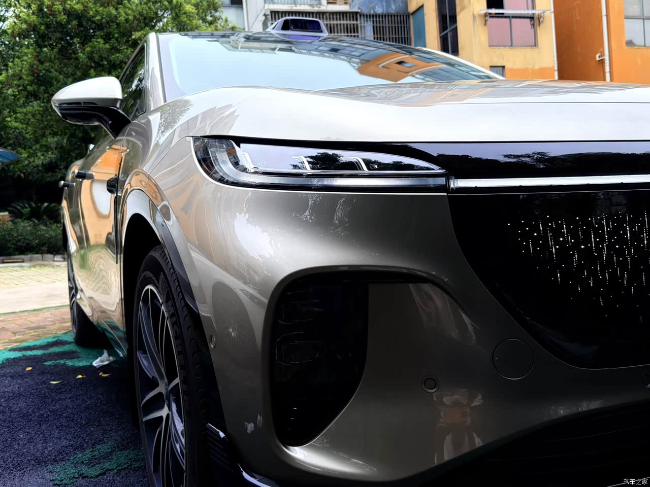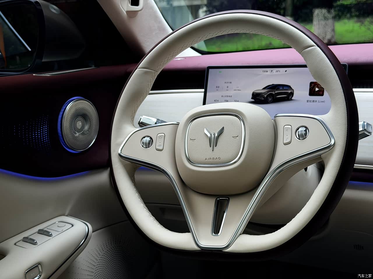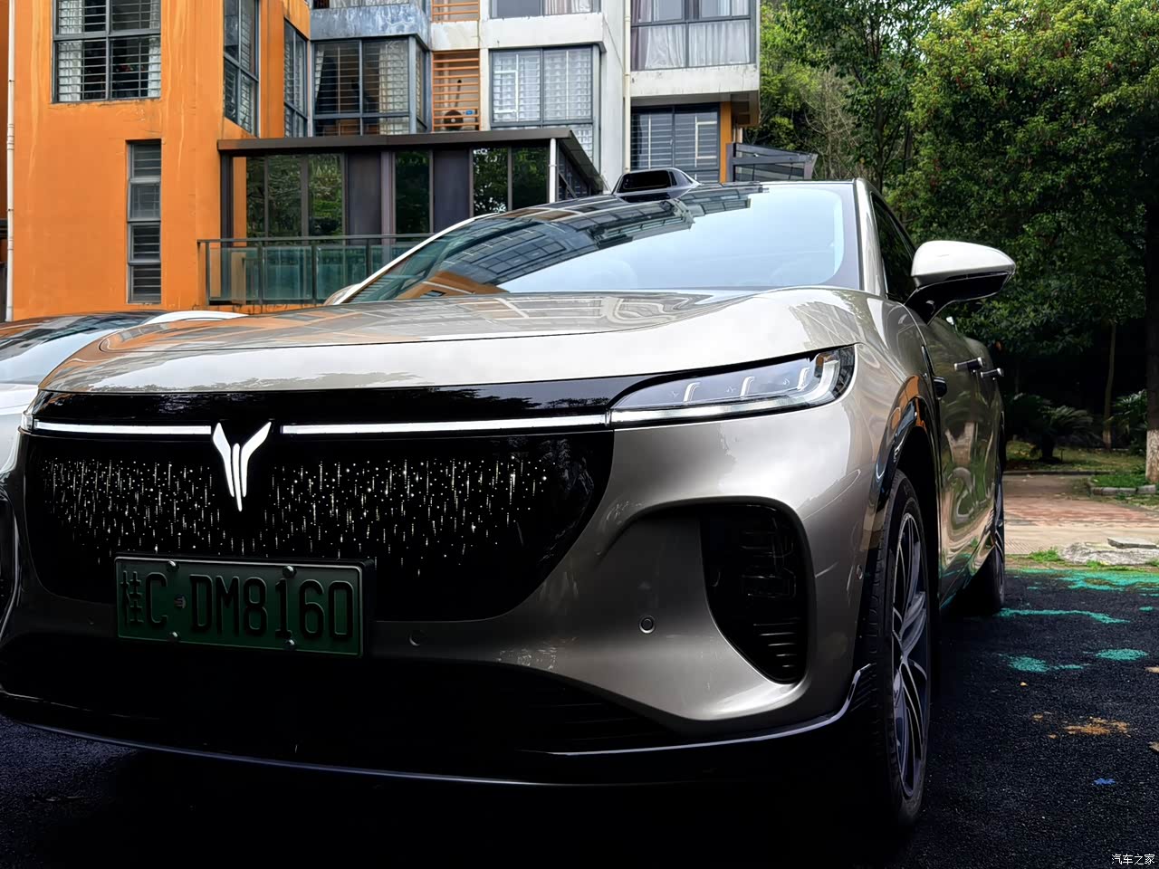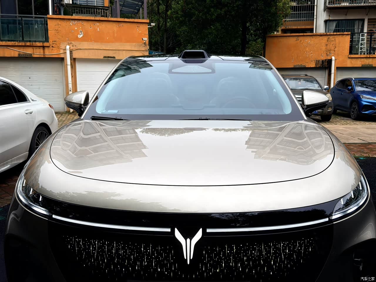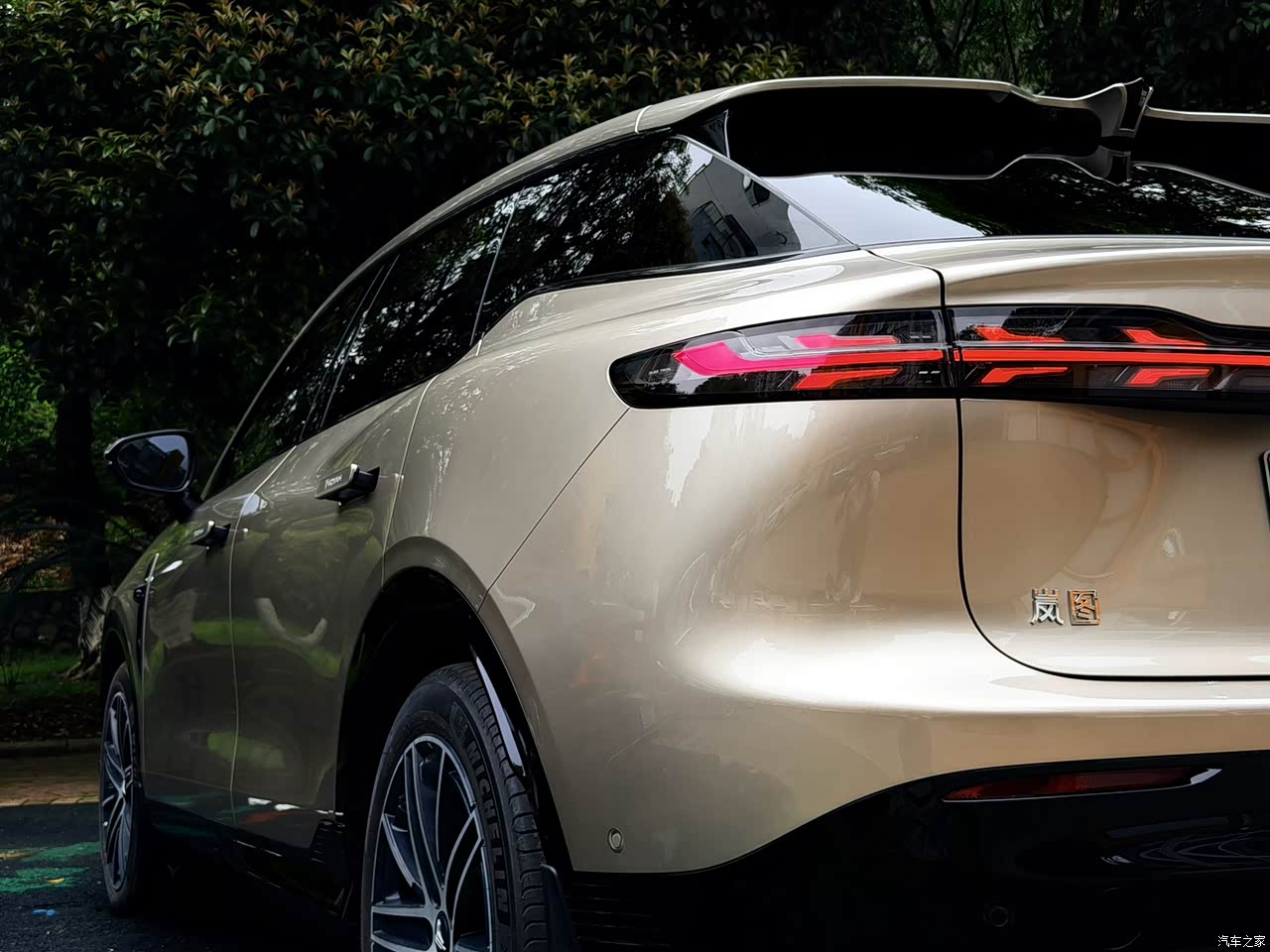 外观上,岚图知音走的是简约大气的路线,整体线条圆润流畅,没有越野车那般硬朗的棱角,却自带一种沉稳大气的气质,越看越耐看。我选的金色车漆,质感十足,阳光下光泽细腻,高级感拉满。这段时间跑过几次野外路段,发现车漆也十分厚实,偶尔有石子崩到车身上,仔细检查后几乎看不到痕迹,即便有轻微的白点,洗完车后也能恢复干净,日常打理起来十分省心。