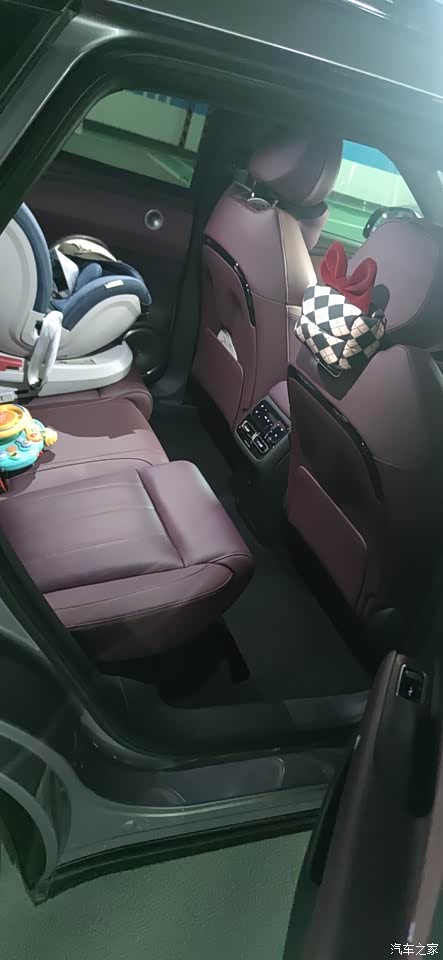 整车比Model Y大一圈,2960mm超大轴距让内部空间比较宽裕,后排放个宝宝椅也能宽松坐下4个人。
