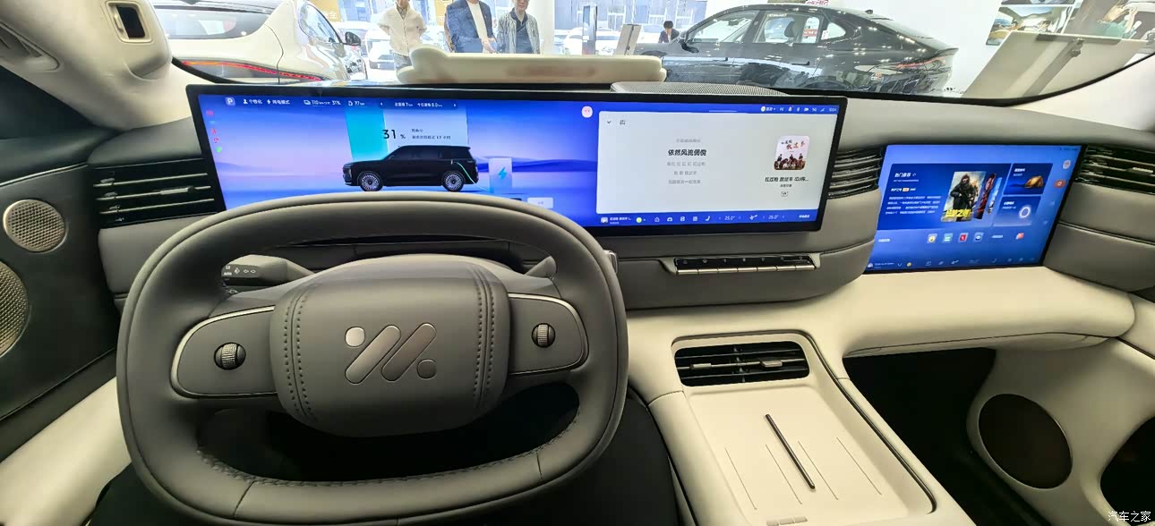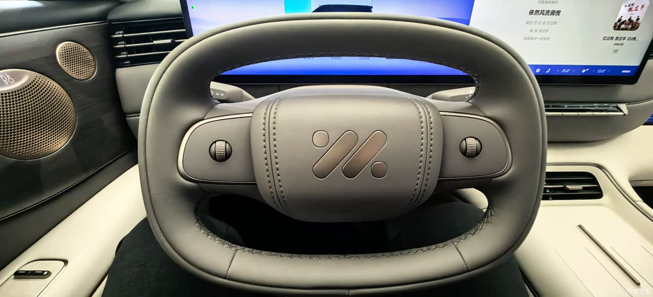 对于这辆车试驾完有这么几点,我不是特别满意,首先是这辆车的方向盘虽然传承了上汽智己的独有方向盘,是这种椭圆形的,但是整体握感不太舒适,并且呢如果换成正常规的圆形方向盘又会挡住屏幕,所以说这方面设计感还是有点怪和特立独行吧第二一点不满意的就是这辆车的一个智能化对比领克900的独立前后音响控制,也就是说前排干,前排的后排看后排的电视互不打扰,有独立的头枕音箱虽然上汽智己ls8也有,但是没有像领克900那样独立分开,独立控制Ls8和LS9也是一样,都是没有的。智能化方面还有就是语音操控不支持第二排电动座椅打开或者收,语音操控还有就是语音方面说一些话,有时候语音听不懂也就是说他必须一个标准化的说话方式他才会打开,稍微偏一点可能就听不懂了。
