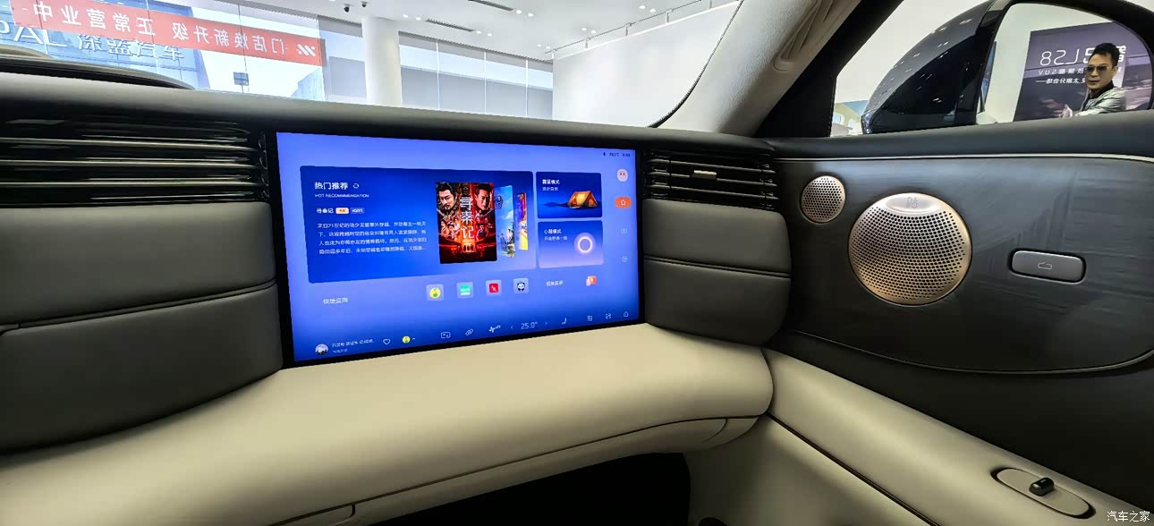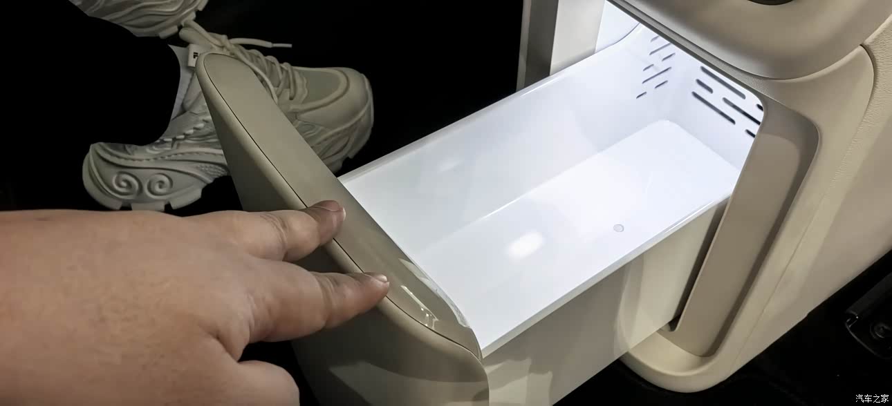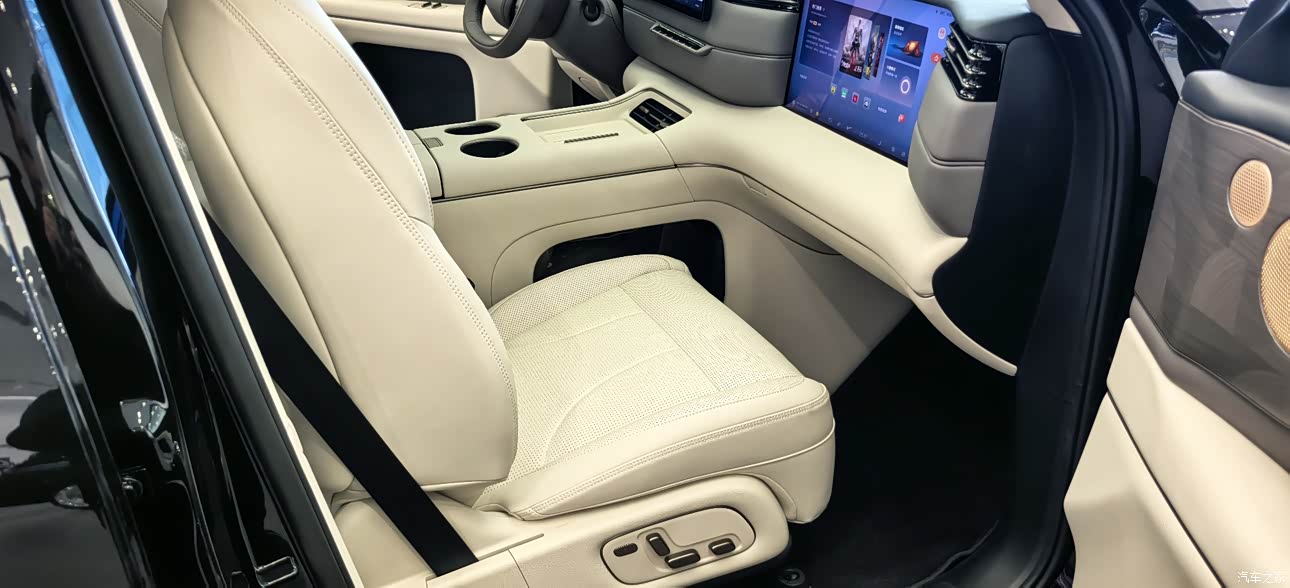 内饰部分虽然讲的不多,基本上和LS9一样,但是突出一个家庭使用率,尤其是这个前排的三个屏幕可以说是非常耀眼,并且尺寸都特别大主驾驶屏幕达到了27寸,副驾驶屏幕为15.6寸第二排也配备有相对应的尺寸屏幕,但是好像只有6座才有,5座没有,整车的这个材质非常舒适,尤其是头顶整体的这个绒布的包裹,非常有家庭的感觉,整体的皮质包裹也是非常到位的,拳拳到肉,任何你能手触摸到的地方都是有着大量的软性材质和皮质包裹 。还有那个机械按摩,真的是太舒服了我老婆试驾过几次,坐上去都不想下来还有就是来自bo的一个25个音响喇叭,音响效果也是杠杠的。并且第二排下方不仅配备了一个脚托,还给了一个储物盒,可以放鞋和220W的一个电源,并且冰箱,彩电,大沙发都是安排到的。分段式的一个大天窗也是可以给到足够的采光。内饰这方面也是几乎满分存在!