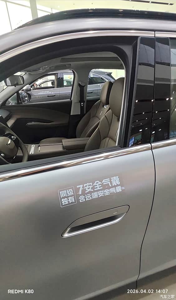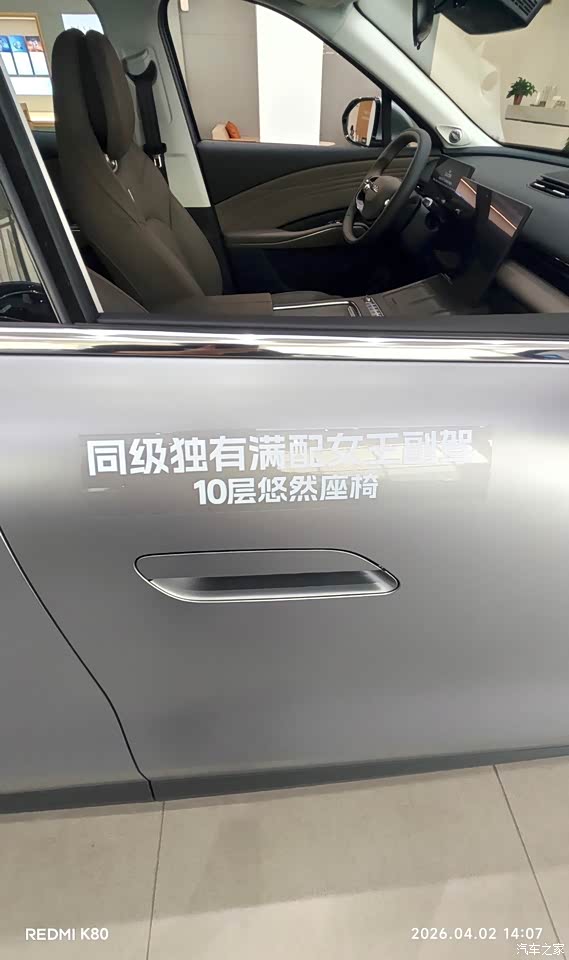 女王副驾虽舒服,但主驾座椅缺少腿托,长途开车腿伸不开;10层座椅软是软,但支撑性一般,开久了腰会有点酸;车内隔音一般,高速胎噪、风噪有点明显,影响乘坐质感。 7气囊配置够,但被动安全配置拉满,主动安全的智驾功能比较基础,没有高阶领航辅助,高速只能用基础ACC,长途不如带智驾的车省心;部分细节做工一般,内饰硬塑料偏多,摸上去廉价感有点重。