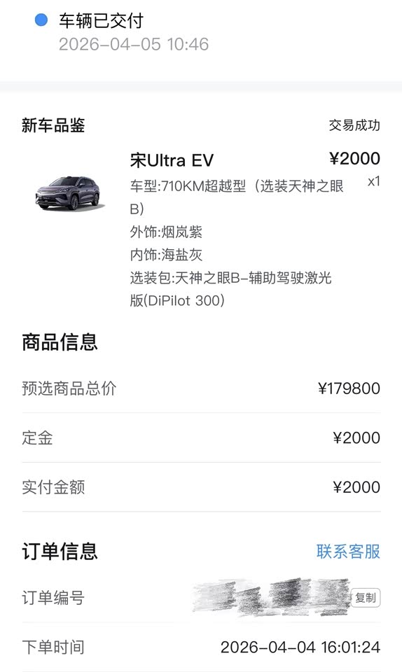 清明节准备换车,本来计划第一天看比亚迪,第二天看新势力之类的,结果第一天试驾完比亚迪真香了,直接秒了,这个宋Ultra的紫色真的好好看,第一次接触闪充自动泊车之类的,感觉自己以前开那日系古董油车真像原始人。 其实刚开始一直在纠结宋UItraEV和海狮06EV,个人觉得海狮06外形还是比宋UItra好看的,但是海狮那个双眼皮车灯实在是有点丑,而且后盖板确实是塑料的,所以就劝退了,如果没有这两个雷点的话我肯定是果断入海狮的。