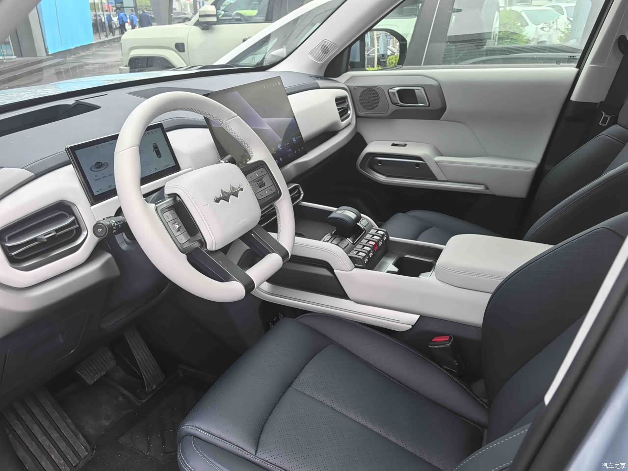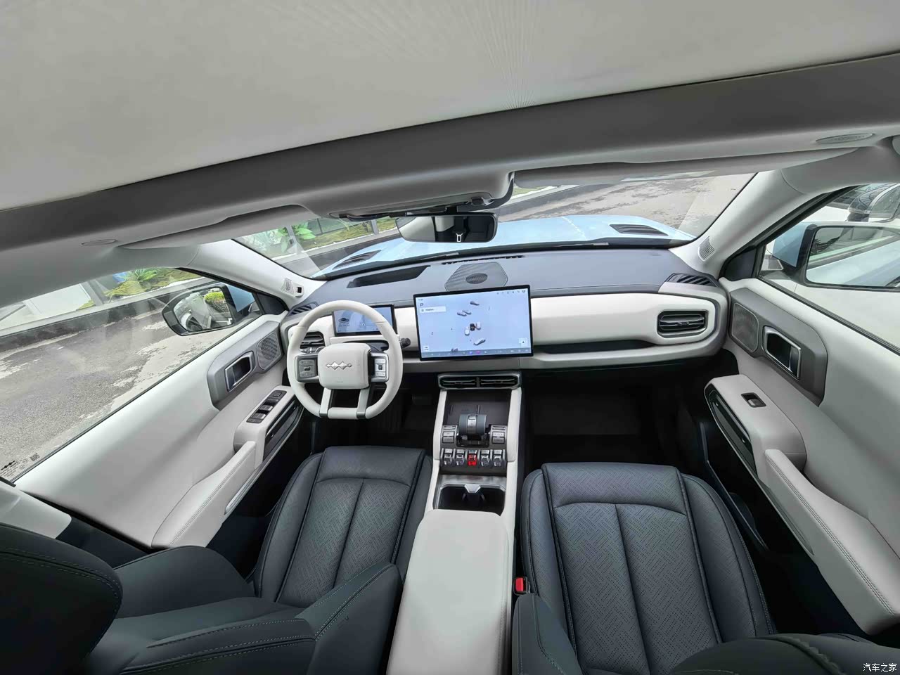 外观设计硬派又不失精致,贯穿式LED日行灯辨识度拉满,点亮后科技感十足,方正的车头搭配黑色护板,越野气息浓厚。车身侧面线条硬朗,18寸轮毂搭配235宽胎,视觉上稳重扎实,悬浮式车顶设计时尚,车门下方的内凹线条增加了层次感。车尾“小书包”造型经典,竖置尾灯简洁大气,整体硬派SUV的造型既适合城市通勤,又能满足户外出行的审美需求。