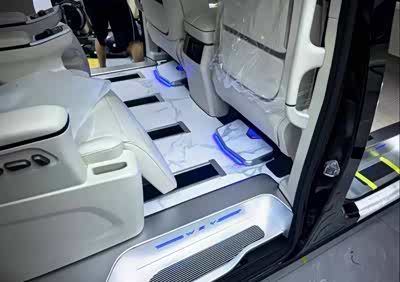 内饰用料扎实,日常接触区域都覆盖了软性材质和皮质缝线。座椅填充物厚实,表皮触感细腻,缝线工整。中控台和门板上的木纹饰板纹理自然,配合多色氛围灯,提升了座舱的豪华氛围。新车异味控制得不错,没有刺鼻的化学气味,这点对于接待敏感体质的客人尤为重要。