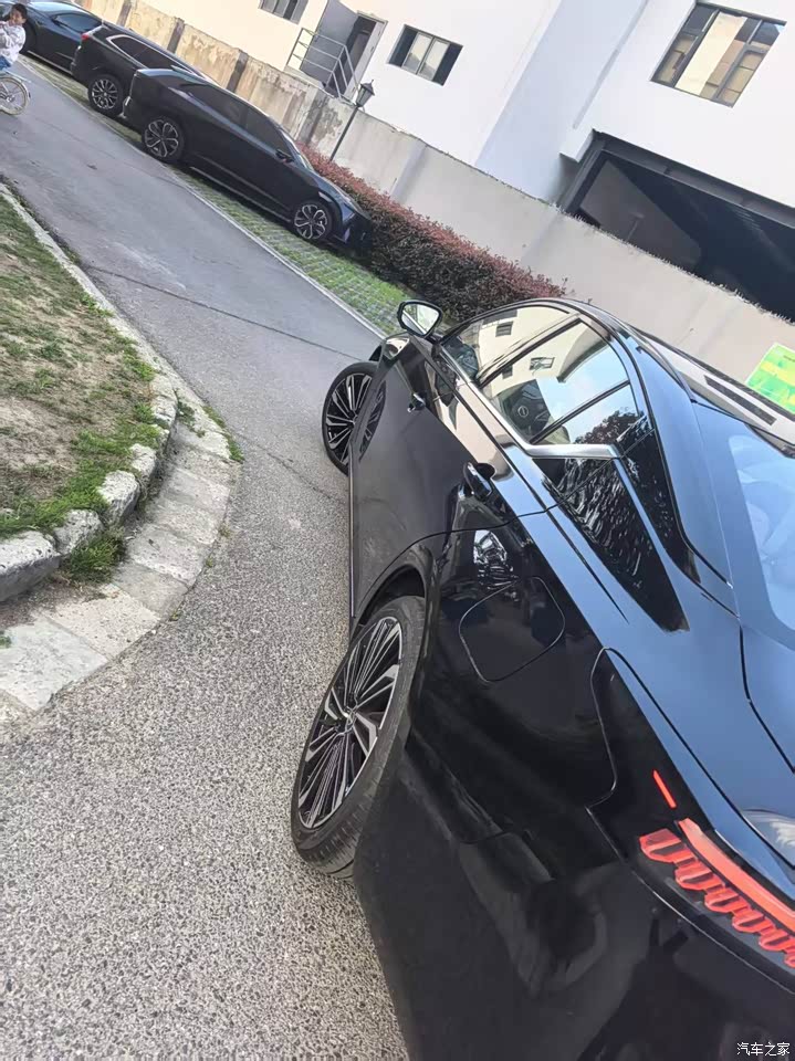 车身侧面的线条显得颇为修长,长达4米9的车长给人以十分舒展之感,其采用的隐藏式门把手不仅外观漂亮,而且在功能上能够起到降低风噪的作用,使得车辆在高速行驶时更为安静。 车尾设计简洁大方,贯穿尾灯和前脸呼应,黑色车漆在阳光下还有点细闪,质感特别棒,洗车后锃光瓦亮的,停在小区里回头率不低。唯一小遗憾就是黑色太容易沾灰,得经常洗,但架不住好看啊!