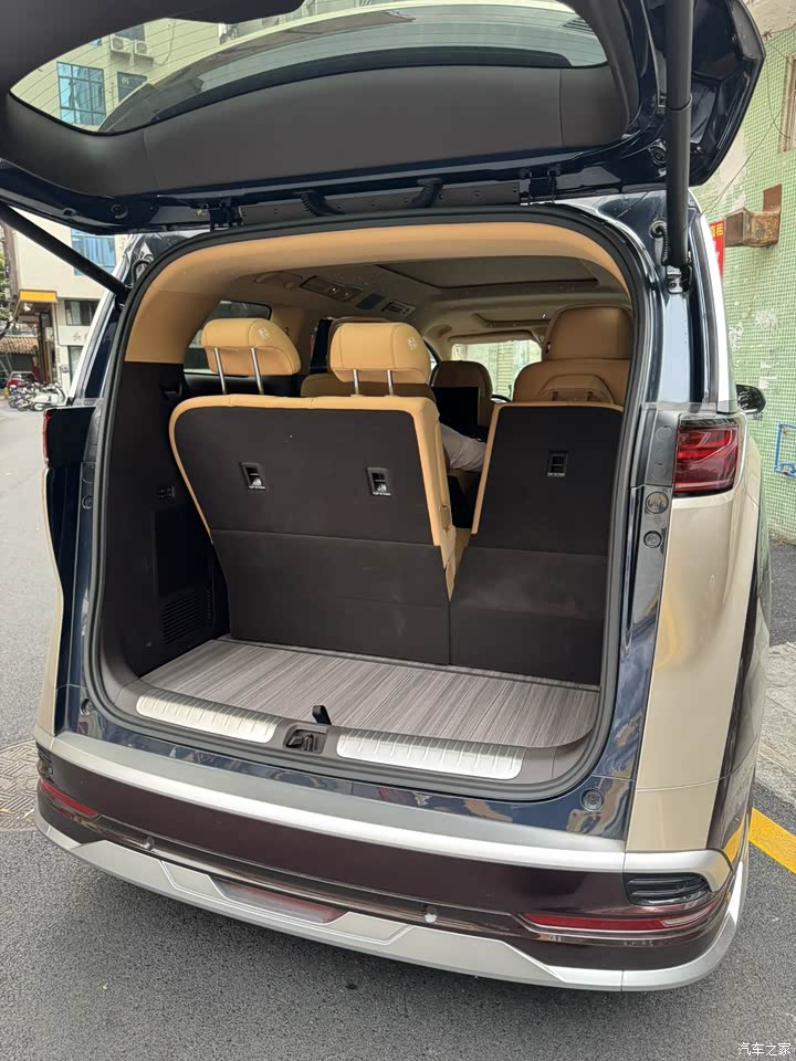 当初铁了心换MPV,就是受够了挤。D9这车长5米25,轴距3米11,2 2 3的布局,把每一排都给你安排得明明白白。最让我惊喜的是第三排。以前看别的MPV,第三排就是个“蹲坑”。D9的第三排是真的能坐成年人,我178的个儿坐进去,腿部还有余量,靠背还能调,长途都不带累的。现在仨孩子出门,两个大的老爱抢着坐第三排,说那是他们的“秘密基地”,在那边自己玩、看动画片,互不打扰。后备箱更是家庭出行的“救星”。满员状态下,塞几个行李箱加婴儿车毫无压力。出门旅游再也不用纠结“带这个还是带那个”,直接往里扔就行,这种从容,开过小车的人都懂。