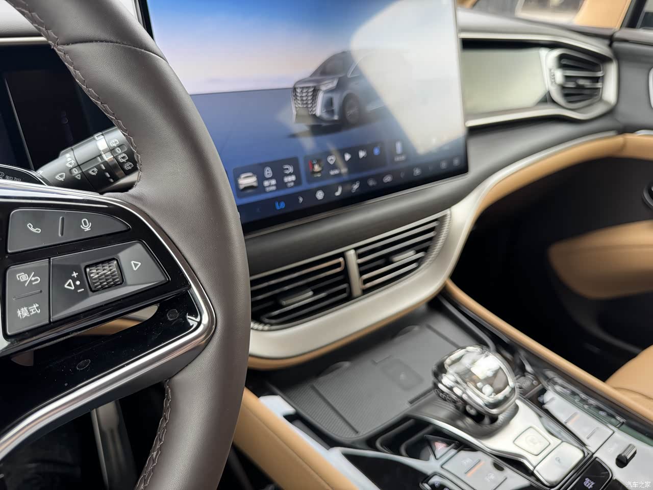 买混动之前,我最担心的就是续航——怕纯电跑不远,又怕亏电成油老虎。开下来半个月,这事我得好好说道说道,官方标的是190公里(NEDC),我实测市区正常开,空调开着、拉着全家老小,能跑个160-170公里左右。我每天上下班来回30公里,加上接送孩子、买买菜,基本上一周一充两次就够了。家里装了充电桩,到家插上,第二天满血复活,跟用手机一样方便。有次专门试了一下,满电出发,纯电模式跑到发动机强制介入,表显跑了172公里。对这个近3吨的大块头来说,我觉得可以了。
