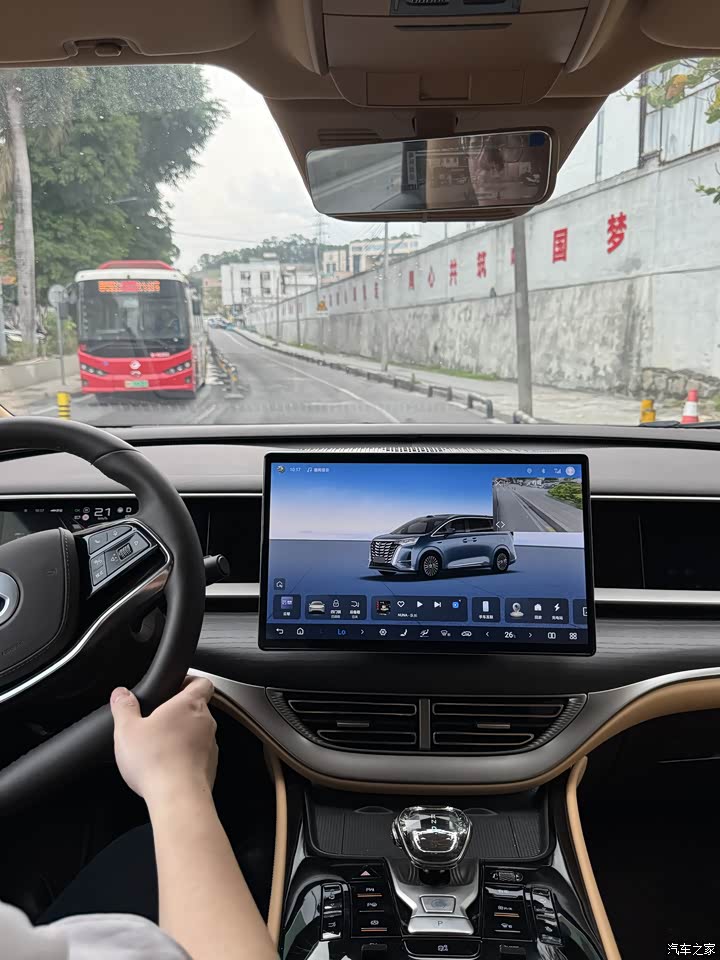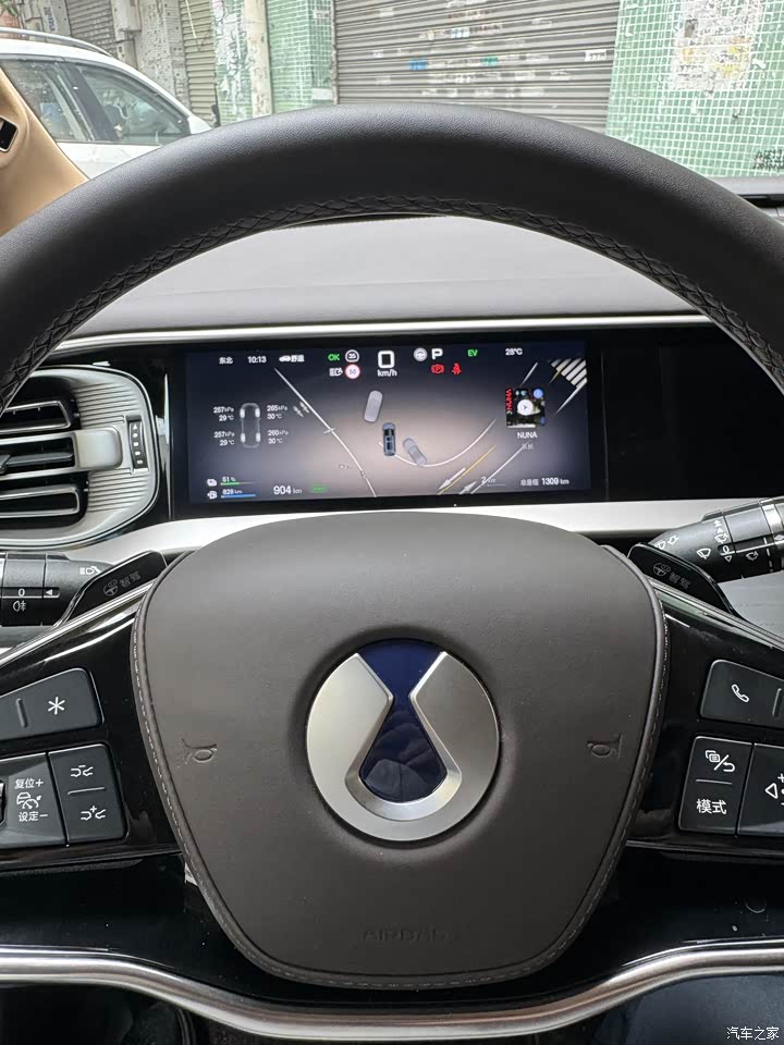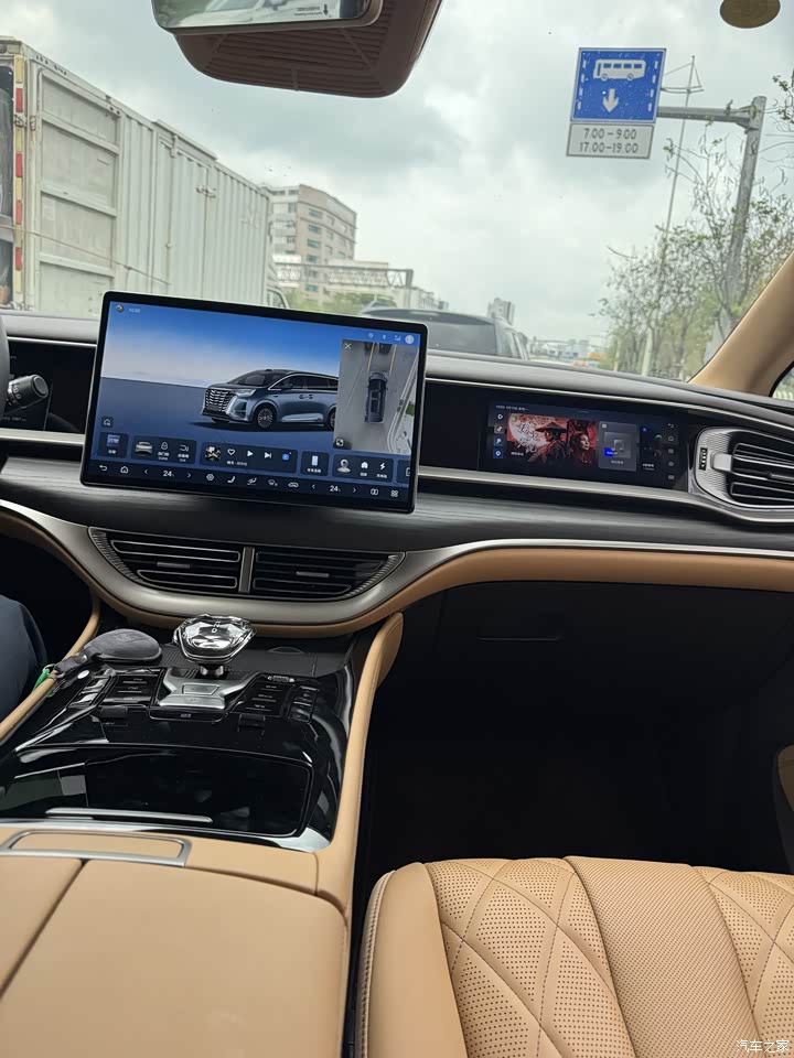 开这车之前,我心里也犯嘀咕:五米三的大块头,将近三吨重,开起来会不会像开船?半个月跑下来,结论就一句:稳,是真的稳;肉,也是真的肉。这车底盘滤震是真有功夫。过减速带、井盖、坑洼路面,“砰砰”两下就过去了,干净利落,车里基本没什么感觉。有次老二在后排端着水杯喝水,我过了个减速带,水愣是没洒出来——媳妇当场给我竖了个大拇指。方向盘很轻,开起来完全不觉得是在开五米三的大车。变道、掉头都挺灵活,转弯半径比我想象中小,小区里调头一把能过,这点必须点赞。电驱的时候安静得离谱,车里只有细微的风噪,孩子睡得特别踏实。动力输出很线性,起步不窜,加速不猛,一切都是慢悠悠的、稳稳当当的。